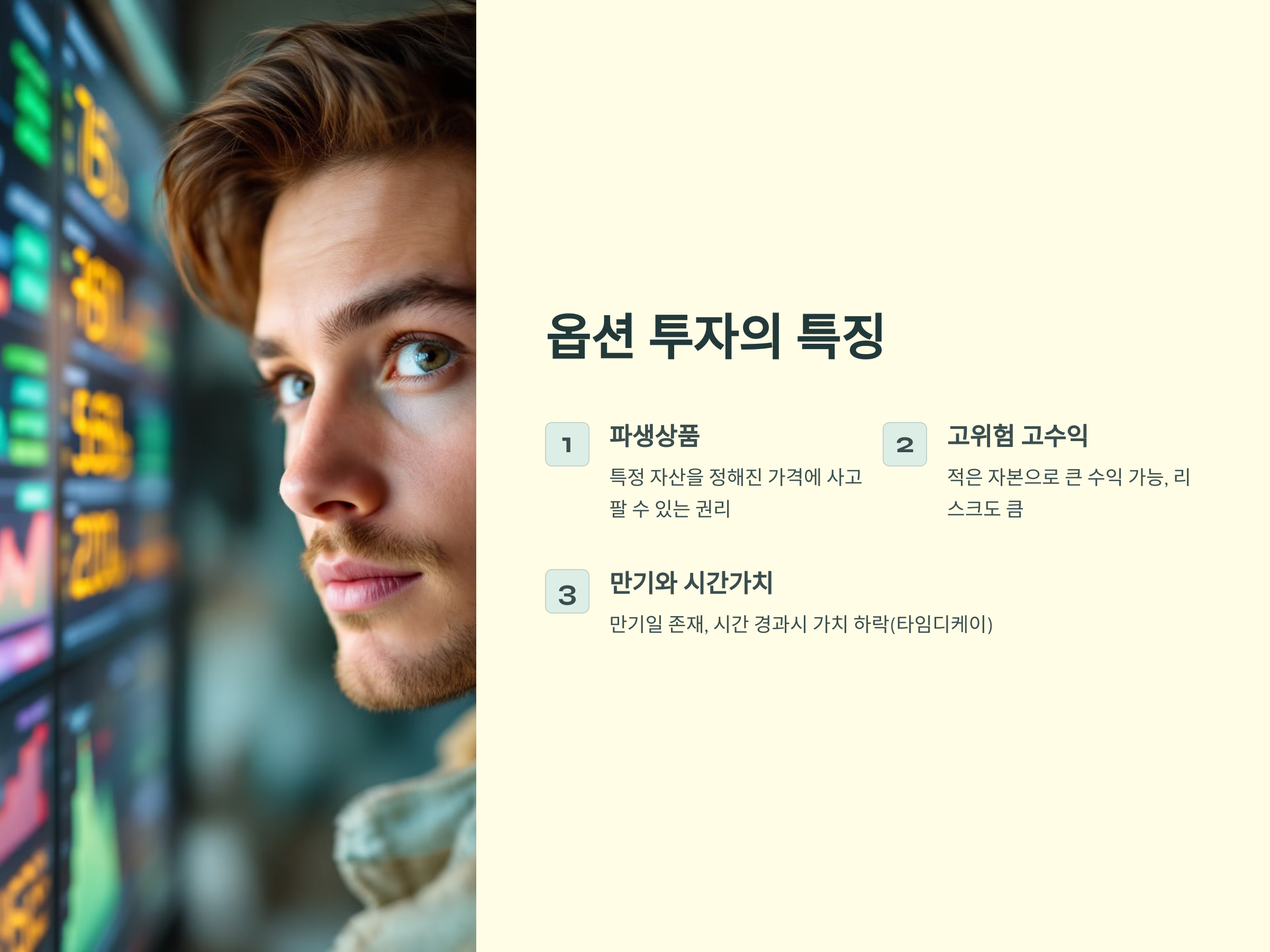 옵션은 특정 자산을 정해진 가격에 사고팔 수 있는 권리를 거래하는 파생상품입니다. 만기일과 행사가격이 정해져 있으며, 상대적으로 적은 자본으로 큰 수익을 노릴 수 있는 것이 특징입니다. 하지만 그만큼 리스크도 크기 때문에 경험과 전략이 필수입니다. 특히 코스피200 옵션과 같은 국내 지수 옵션은 하루에도 수십 퍼센트씩 등락이 반복되며, 잘못 투자할 경우 원금 전액을 잃을 수도 있습니다. 최근에는 옵션을 활용한 헤지 전략도 각광받고 있어, 시장 하락기에 대비하려는 투자자들이 많이 이용합니다. 그러나 초보자라면 반드시 충분한 공부와 연습을 거친 후 소액부터 시작해야 안전합니다.