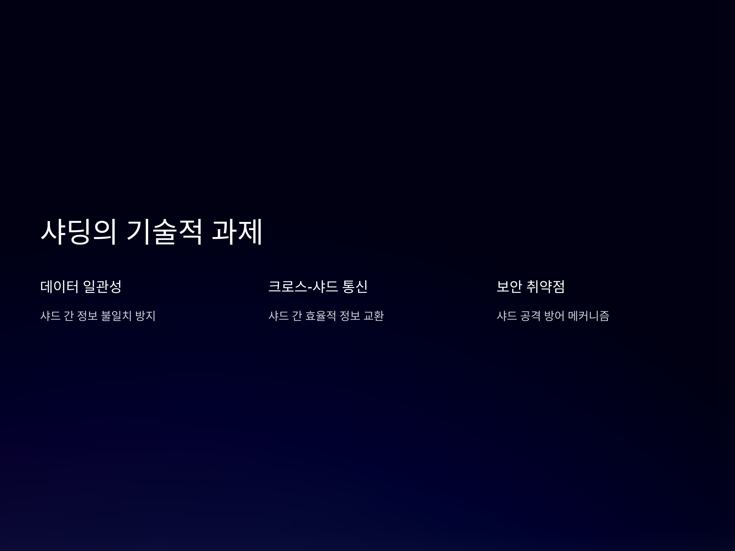 샤딩을 구현하기 위해서는 각 샤드 간의 동기화 문제와 데이터 일관성을 유지하는 문제가 해결되어야 합니다. 샤드 간의 정보가 일관되지 않으면, 네트워크 전체의 신뢰성에 큰 문제가 발생할 수 있습니다. 또한, 샤드가 독립적으로 운영되므로, 각 샤드에 대한 보안 문제가 발생할 수 있습니다. 이러한 문제들을 해결하기 위해 이더리움 개발팀은 여러 가지 방법을 연구하고 있으며, 샤딩이 성공적으로 구현되면 이러한 과제들을 극복할 수 있을 것입니다.