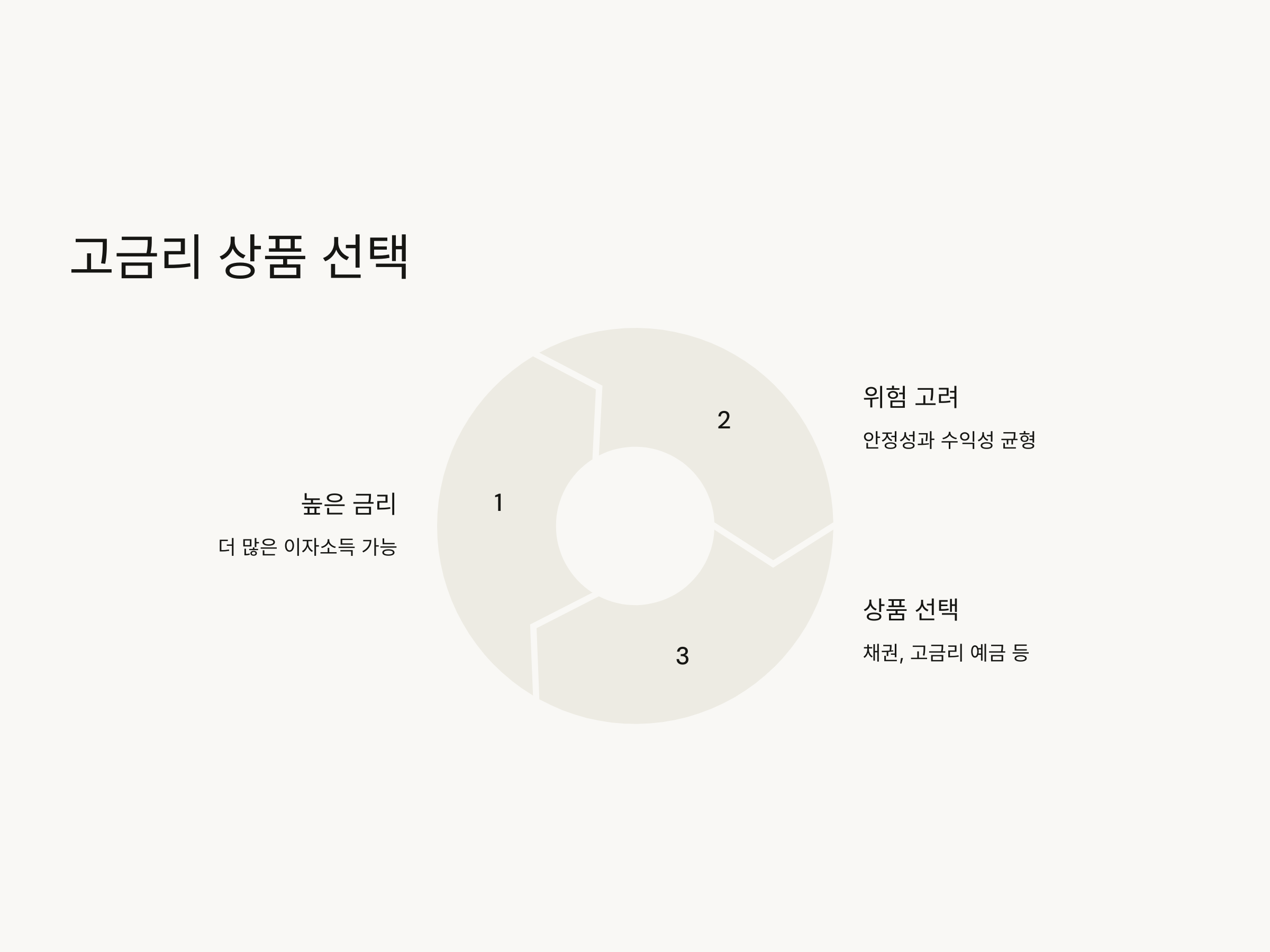 하지만, 금리가 높은 상품일수록 위험도 커질 수 있기 때문에, 상품의 안정성도 함께 고려해야 합니다. 고위험 고수익을 추구하는 상품을 선택할 경우, 실제로 이자소득세 부담이 높을 수 있으므로, 안정성과 수익성을 잘 고려한 선택이 필요합니다.