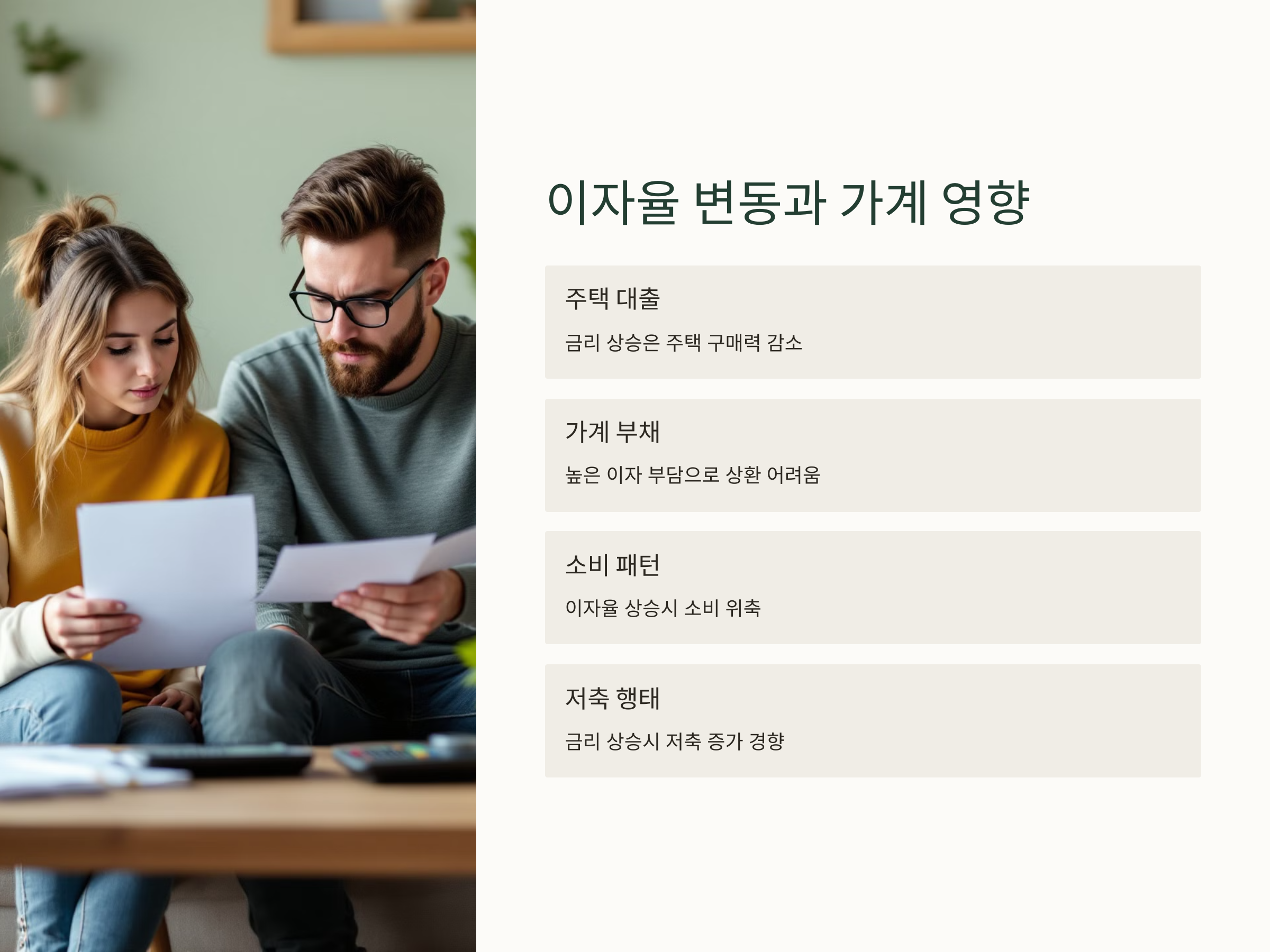 또한, 금리 인상은 가계 소비에도 영향을 미칩니다. 높은 이자율은 대출 상환 부담을 증가시키며, 이는 소비를 위축시키고 경제 성장률에 부정적인 영향을 미칠 수 있습니다. 특히, 2025년 상반기에는 금리 변동에 따라 가계 소비가 조정될 가능성이 큽니다.