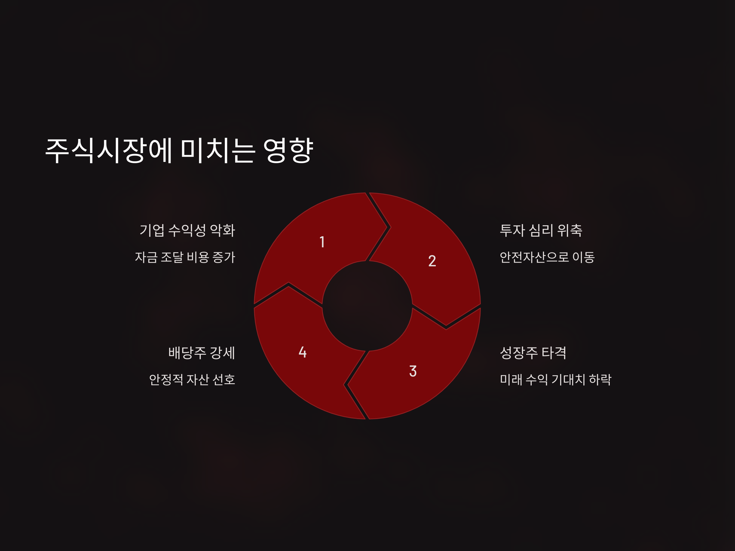 이자율이 인상되면 주식 시장에도 큰 영향을 미칩니다. 금리가 높아지면 기업들이 자금을 조달하는 비용이 증가하고, 이는 기업의 수익성에 악영향을 미칠 수 있습니다. 투자자들은 이를 예측하고, 금리가 높은 환경에서는 자산을 더 안전한 곳으로 이동시키는 경향이 있습니다. 그 결과, 주식 시장에서의 투자자들의 매도세가 확대될 수 있습니다.