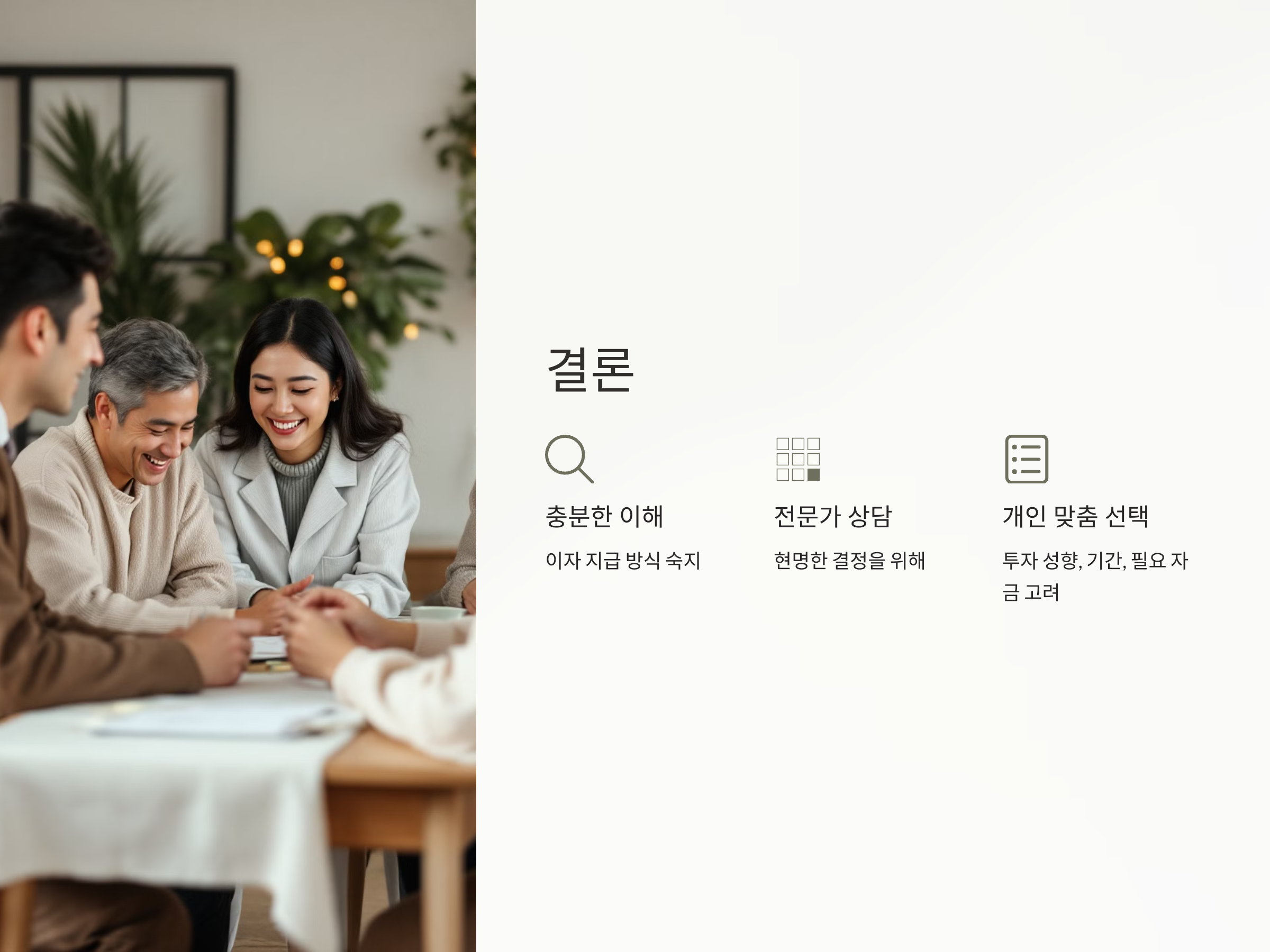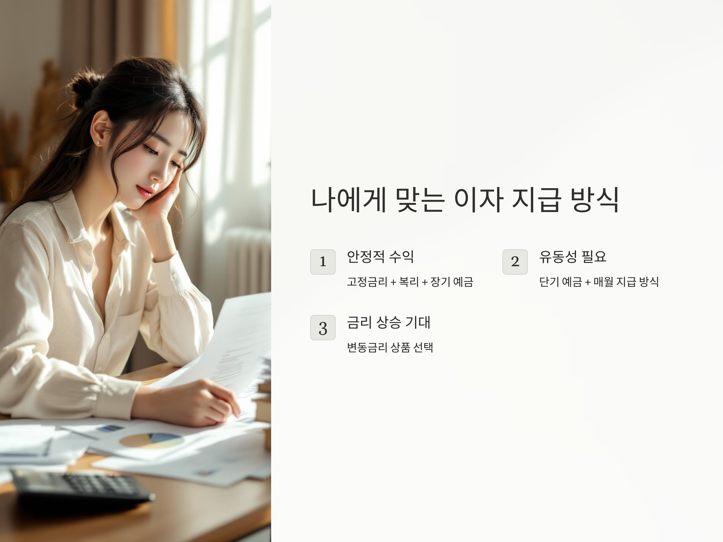 금융 상품 선택 시 이자 지급 방식에 대한 충분한 이해가 필요하며, 전문가 상담을 통해 더욱 현명한 결정을 내리는 것이 좋습니다.