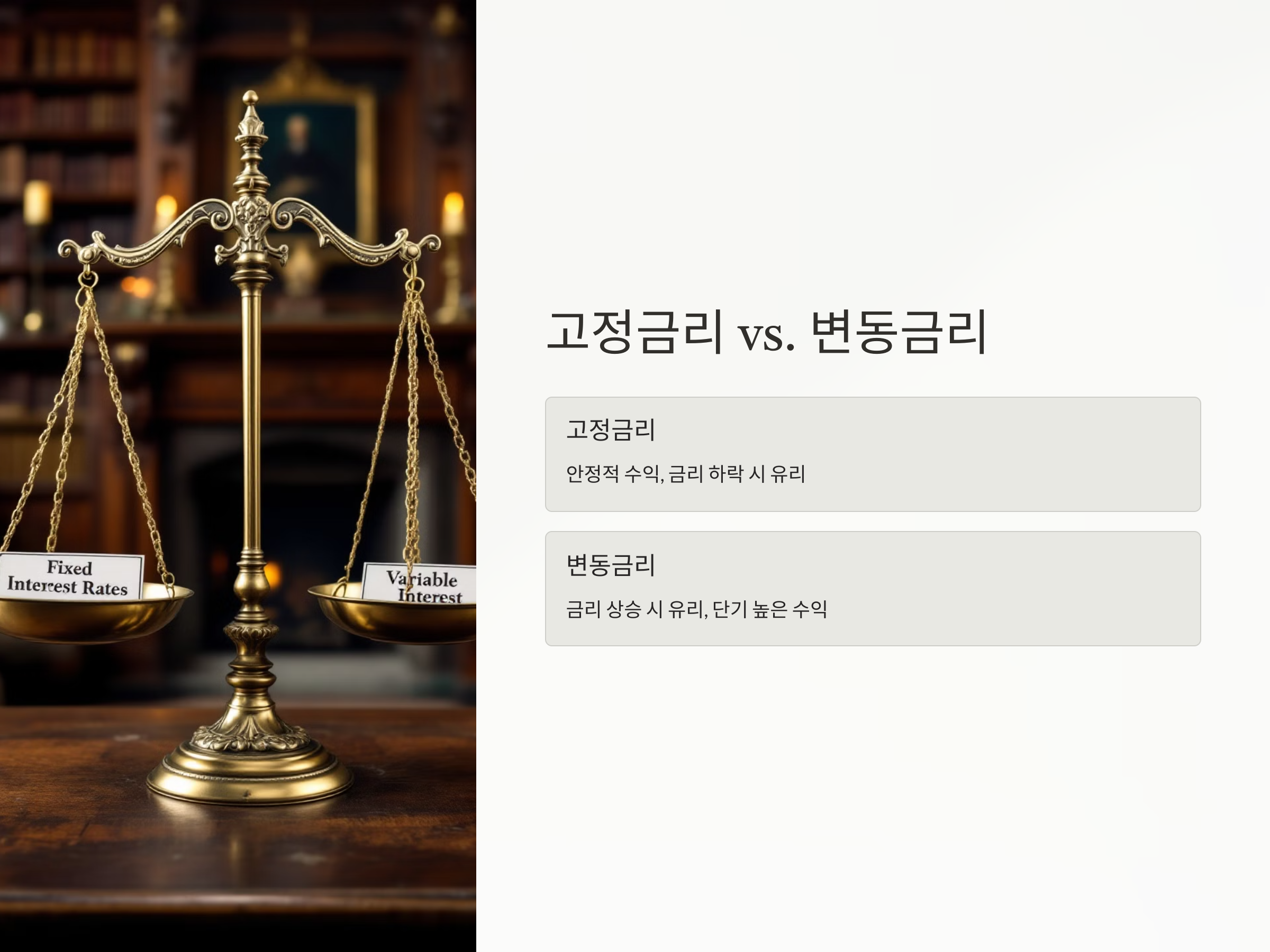 금융 상품을 선택할 때 이자가 고정금리(Fixed Interest Rate)인지 변동금리(Variable Interest Rate)인지도 중요한 요소입니다.