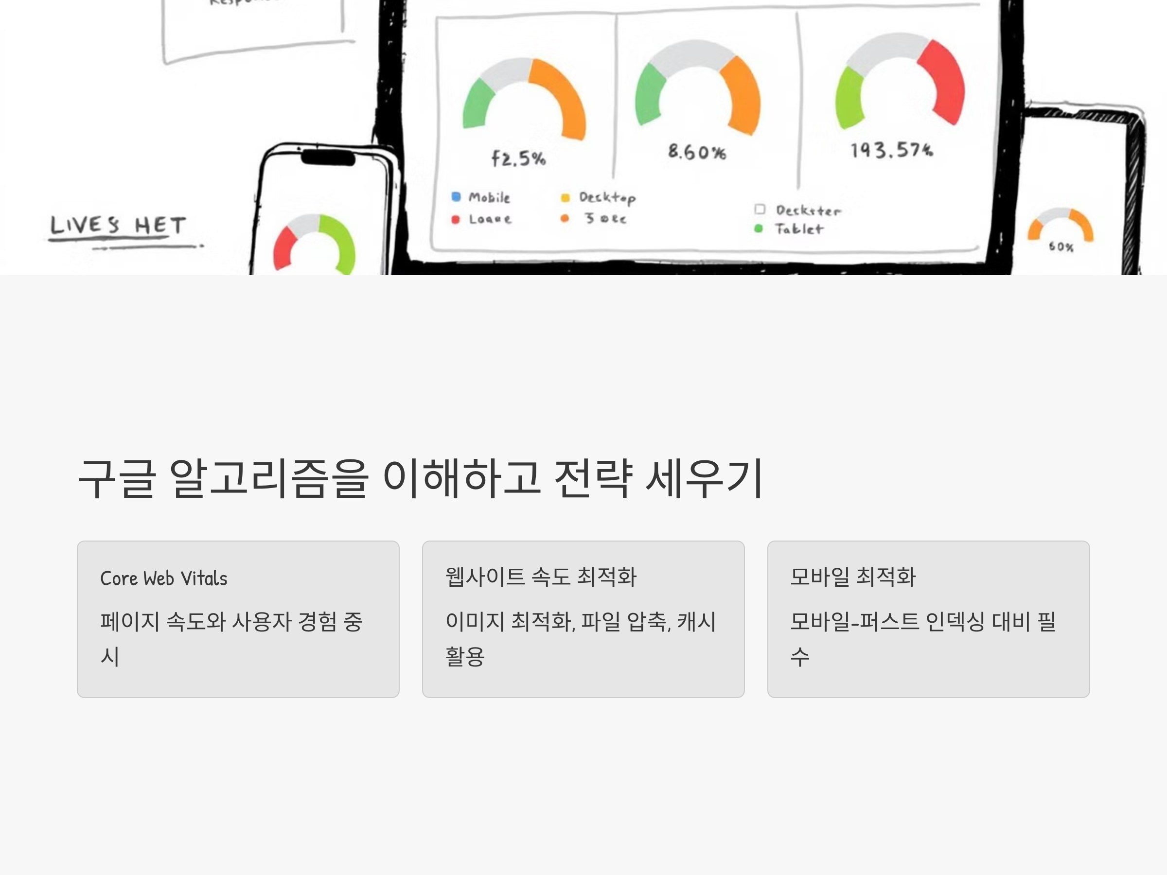 구글의 알고리즘은 정기적으로 업데이트되기 때문에, 최신 트렌드를 반영하는 것이 중요합니다. 최근 구글은 'Core Web Vitals'이라는 새로운 지표를 도입하여 페이지 속도와 사용자 경험을 더욱 중시하고 있습니다. 즉, 웹사이트나 블로그의 로딩 속도가 느리면, 검색 순위에서 불이익을 받을 수 있습니다.
