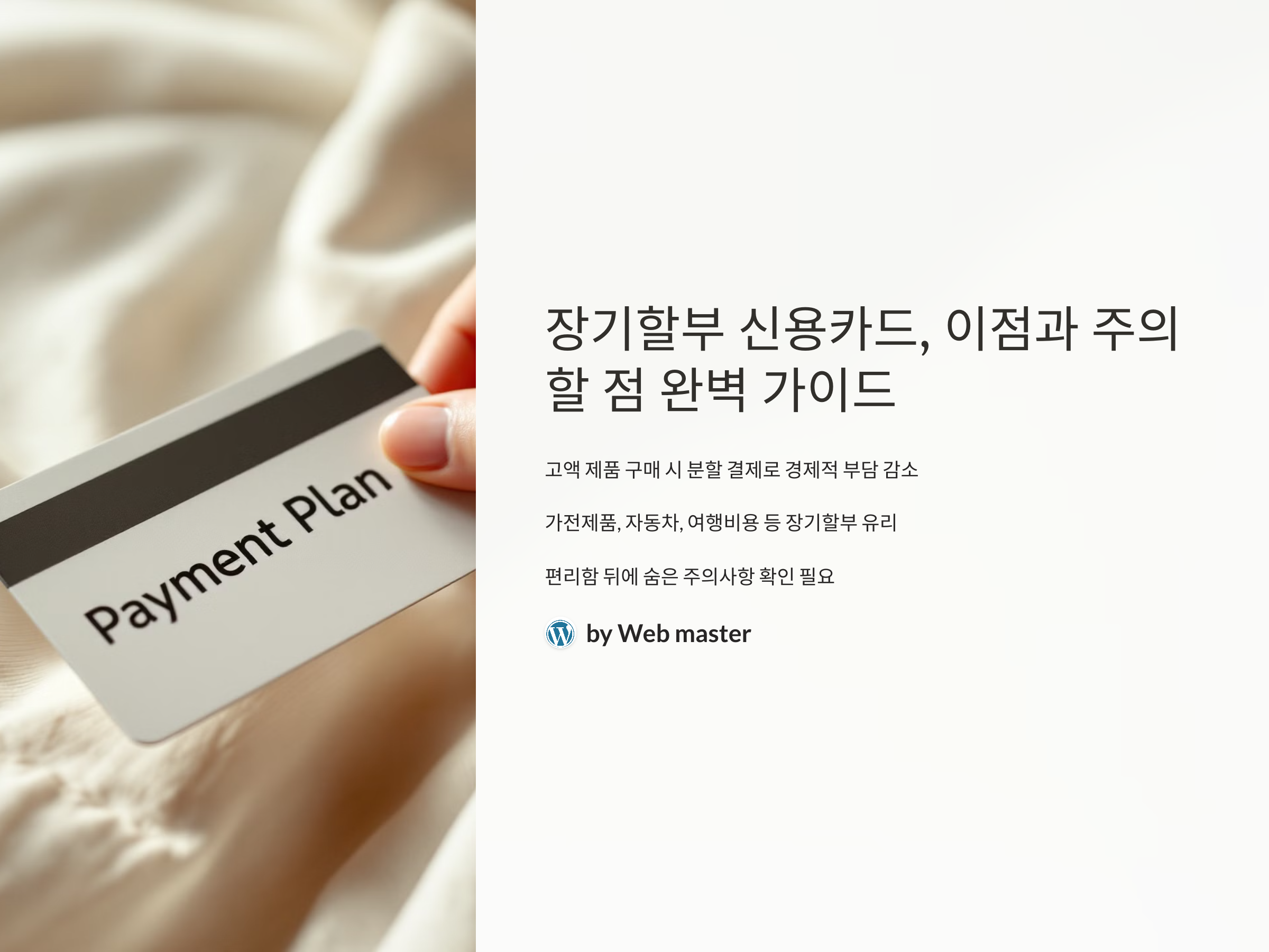 장기할부 신용카드는 고액의 지출을 나누어 지불할 수 있는 유용한 결제 방법입니다. 하지만 이를 잘못 사용하면 상환의 어려움이 있을 수 있기 때문에, 사용 전 충분한 계획과 카드사 상품 비교가 필요합니다. 또한, 무이자 할부를 제공하는 카드를 선택하는 것이 이자 부담을 줄일 수 있는 좋은 방법입니다.