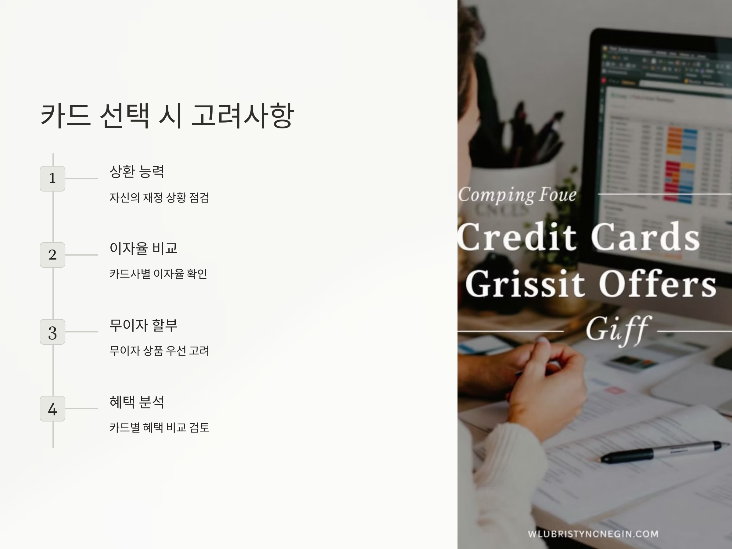 장기할부 신용카드를 선택할 때는, 카드사의 조건을 꼼꼼히 확인하고, 상환 계획을 세운 후, 혜택을 최대한 활용하는 것이 중요합니다. 현명한 카드 선택과 계획적인 상환이 장기할부 신용카드의 장점을 극대화하는 방법입니다.