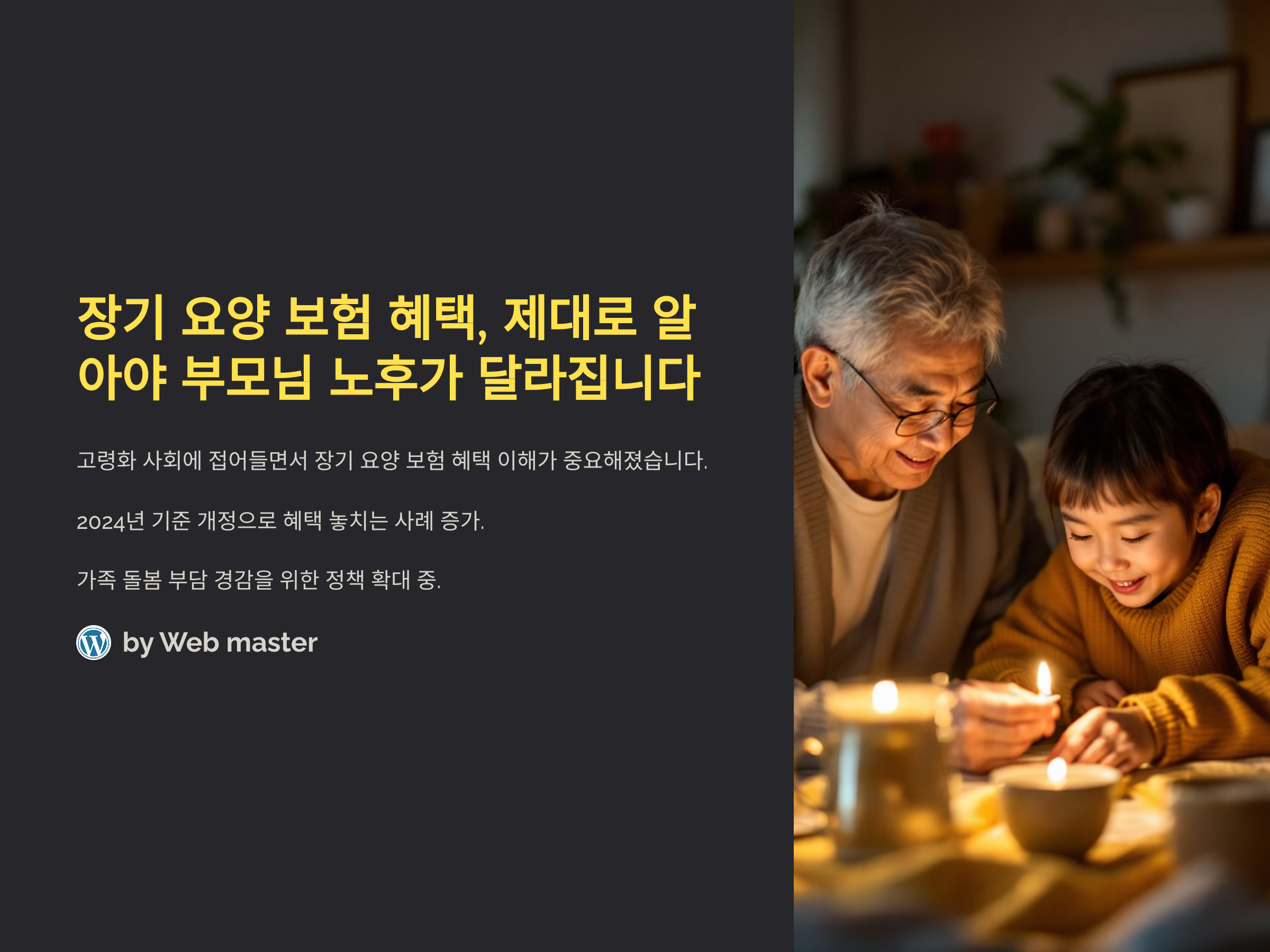 고령화 사회에 접어들면서 장기 요양 보험에 대한 관심이 날로 높아지고 있습니다. 특히 2024년을 기점으로 장기 요양 보험 혜택 기준이 일부 개정되면서, 많은 분들이 그 내용을 정확히 파악하지 못해 손해를 보는 사례도 늘어나고 있습니다. 최근에는 가족 돌봄 부담을 덜기 위한 정책 확대, 재가 서비스 강화, 등급 판정 기준 세분화 등 변화가 생겼고, 이에 따라 대상자 선정과 지원 서비스에도 차이가 생겼습니다. 만약 이 내용을 제대로 알지 못한다면 혜택을 받을 수 있는 기회를 놓치게 되고, 결국 경제적 부담까지 커질 수밖에 없습니다. 앞으로 더욱 심화될 고령화 시대를 대비해 장기 요양 보험 혜택의 최신 정보와 달라지는 제도를 꼼꼼하게 알아두어야 합니다. 지금부터 부모님과 가족을 위한 든든한 대비책, 장기 요양 보험 혜택에 대해 알아보겠습니다.