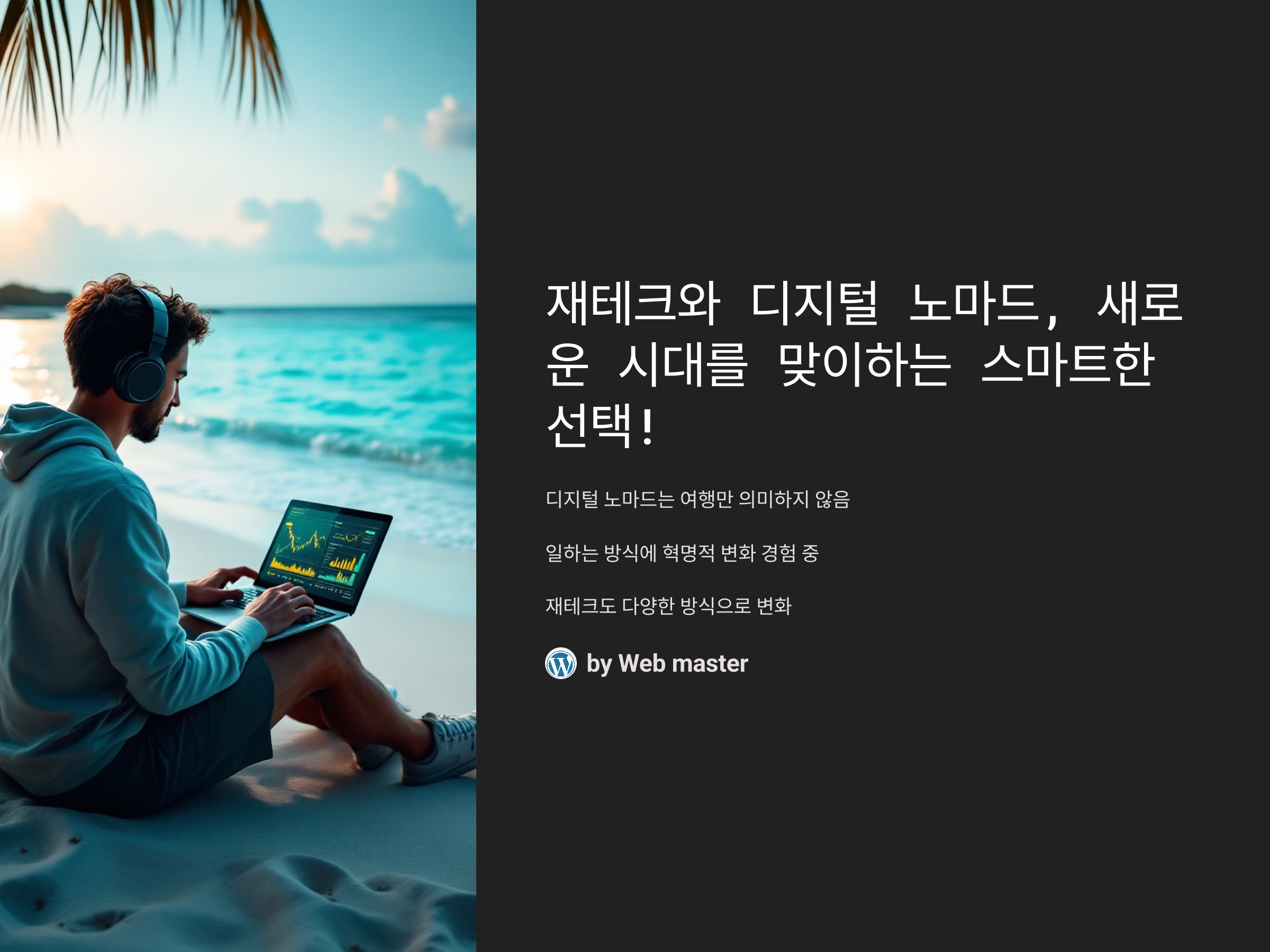 디지털 노마드가 된다고 해서 단순히 여행을 다니며 일하는 것만을 의미하지 않습니다. 최근 몇 년 동안 우리는 일하는 방식에 있어 혁명적인 변화를 경험하고 있습니다. 재택근무, 프리랜서, 그리고 디지털 기기만 있으면 어느 곳에서든 일을 할 수 있는 환경이 급변하고 있습니다. 그 가운데 '디지털 노마드'라는 새로운 라이프스타일이 떠오르며, 재테크와 연결되는 중요한 변화를 맞이하고 있습니다.