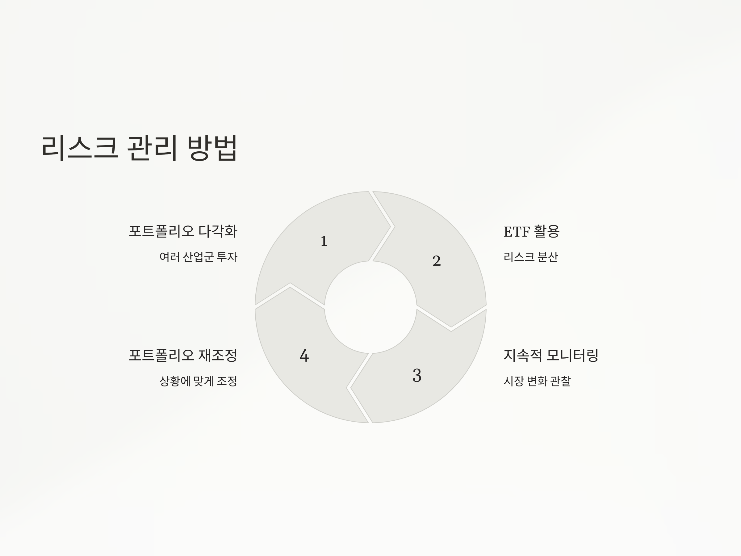분산 투자 외에도, 리스크 관리가 중요합니다. 투자하기 전에 자신이 감당할 수 있는 리스크를 평가하고, 그에 맞는 투자 계획을 세워야 합니다. 예를 들어, 안정적인 배당주에 투자하거나, 성장성이 높은 테크주에 집중할 수 있습니다. 이러한 전략을 통해, 변동성이 큰 시장에서도 안정적인 수익을 얻을 수 있습니다.