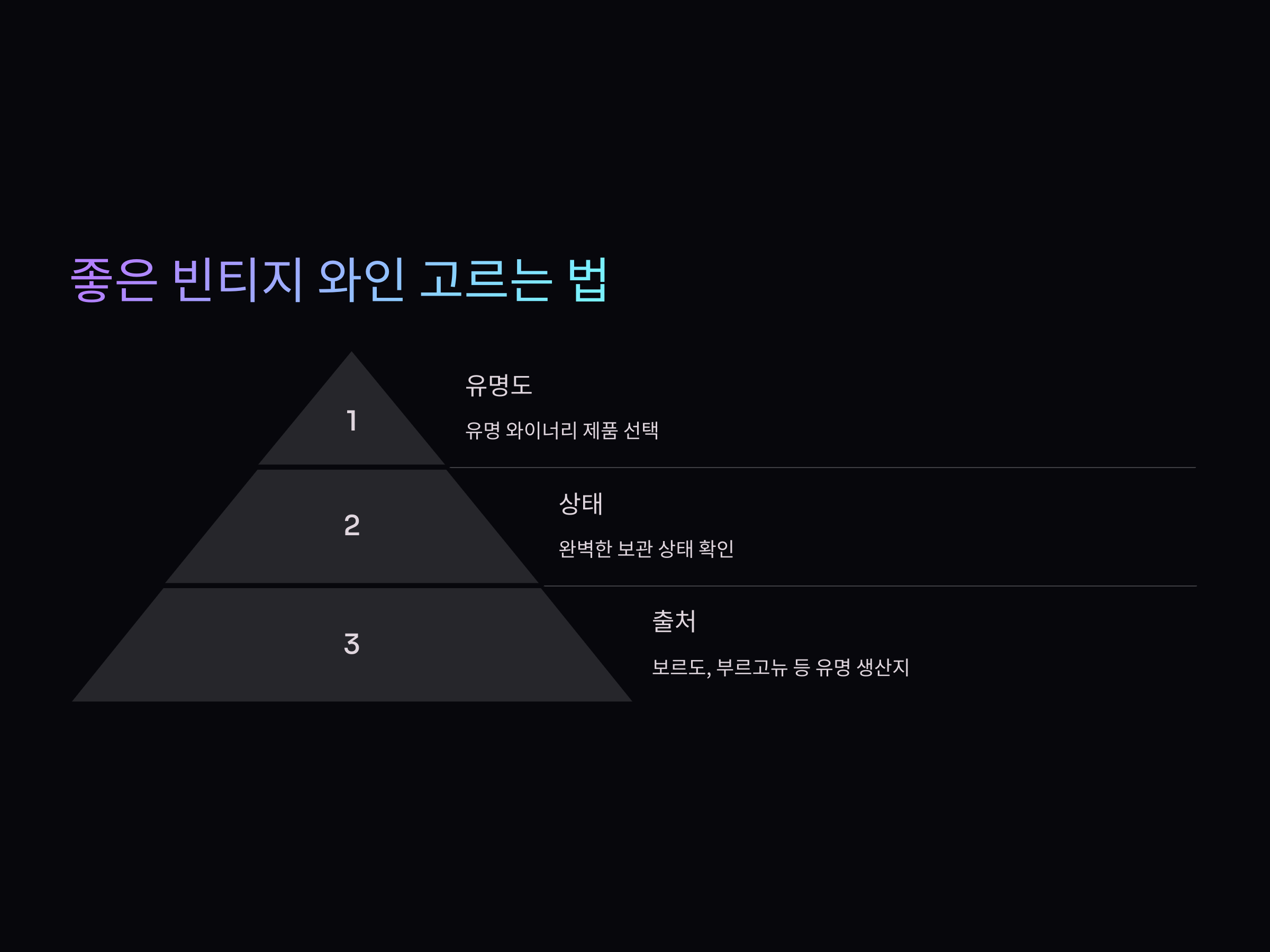 두 번째로, 와인의 상태가 중요합니다. 빈티지 와인이 시간이 지나면서 더욱 깊은 맛을 낸다고는 하지만, 이는 와인의 보관 상태가 완벽할 때만 가능합니다. 제대로 보관되지 않은 와인은 가치가 하락할 수 있으므로, 와인을 구매할 때는 반드시 보관 상태와 관리 방법을 고려해야 합니다.