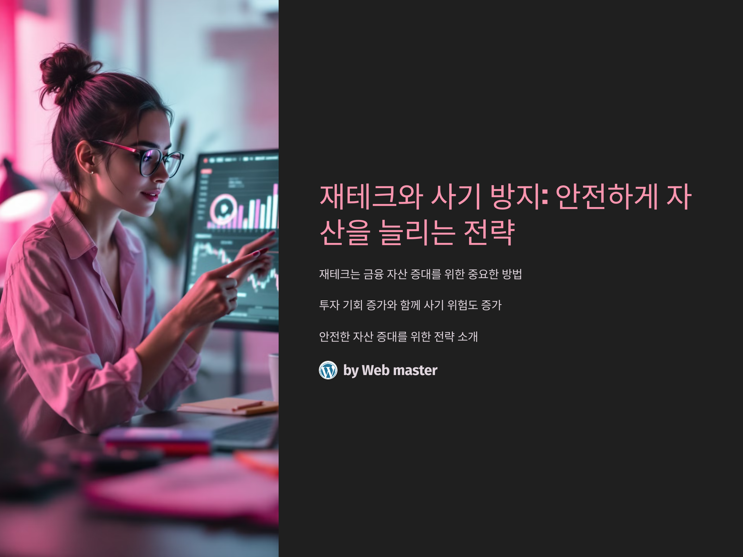재테크는 많은 사람들이 금융 자산을 증대시키려는 목표를 가지고 실천하는 중요한 방법입니다. 그러나 이런 기회에는 항상 사기 위험도 따르기 마련입니다. 최근 다양한 재테크 상품들이 등장하면서, 그에 따른 투자 기회도 많아졌지만 동시에 투자자들을 노리는 사기들도 늘어났습니다. 이에 따라 재테크를 안전하게 실천하려면 사기 방지 방법을 잘 이해하고, 금융 상품의 특성과 리스크를 정확히 파악하는 것이 중요합니다.