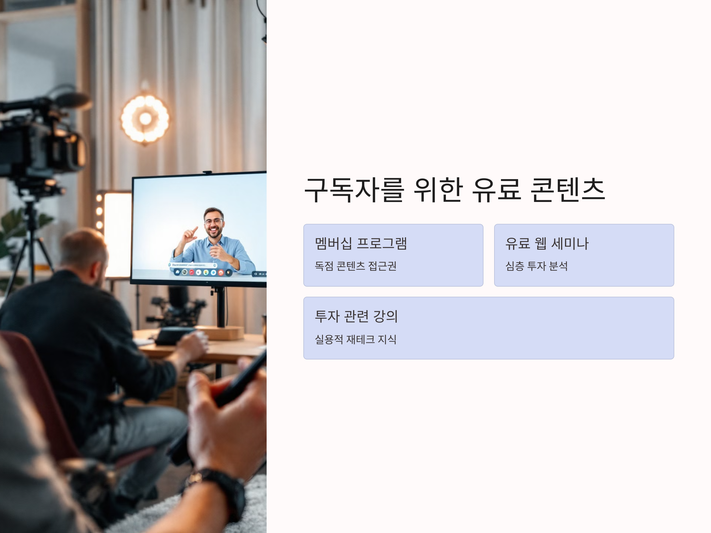 이와 함께, 유료 콘텐츠는 구독자들에게 보다 고급 정보나 실용적인 지식을 제공하는 데 큰 도움이 됩니다. 예를 들어, 주식 투자나 재테크 관련 전문가의 인사이트를 공유하거나, 투자 관련 실시간 데이터와 분석을 유료 콘텐츠로 제공할 수 있습니다. 이러한 유료 콘텐츠 제공은 구독자와의 유대감을 더욱 강화시키며, 수익성 높은 모델을 구축하는 데 도움이 됩니다.