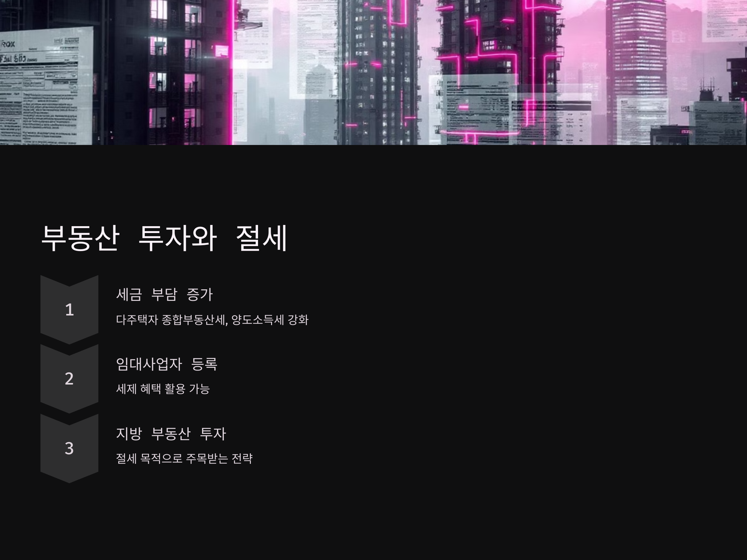 부동산은 여전히 재테크의 핵심 자산으로 꼽히지만, 세금 부담이 커지면서 절세 전략이 필수입니다. 특히 다주택자의 경우 종합부동산세, 양도소득세 등이 강화되었기 때문에 매도 타이밍과 보유 전략을 신중하게 설계해야 합니다. 임대사업자 등록을 통한 세제 혜택, 증여를 통한 절세 등 다양한 방법을 검토할 수 있으며, 임대 소득에 대한 신고도 철저히 준비해야 불이익을 막을 수 있습니다. 최근에는 지방 부동산 투자도 절세 목적에서 주목받고 있으며, 세금 혜택과 수익률을 동시에 잡는 전략이 중요합니다.