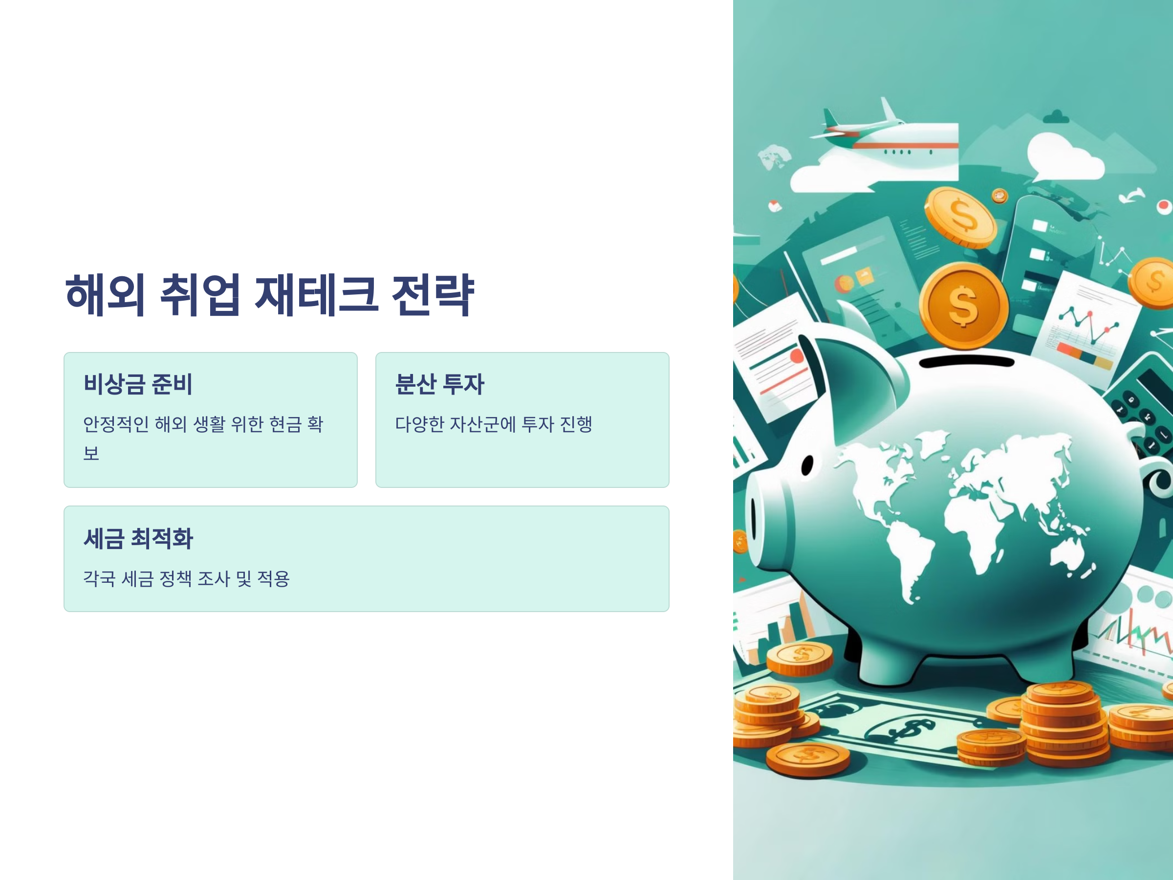 해외 취업과 재테크를 동시에 준비하려면 전략적으로 접근해야 합니다. 두 가지 목표가 상호 보완적으로 작용할 수 있는 기회를 만들어가며, 철저한 계획을 세워 안정적인 재정적 자유를 누릴 수 있습니다.