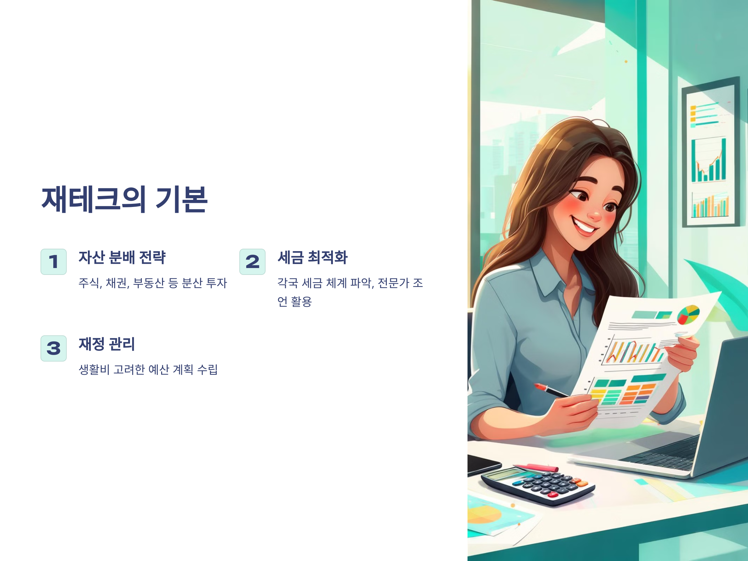 해외에서 일하기 위한 준비는 단순히 어학 능력을 키우는 것에 그치지 않습니다. 특히 해외에서 안정적인 재정적 기반을 마련하고자 한다면, 재테크의 기본 개념을 철저히 이해하는 것이 중요합니다. 해외에서 취업할 때 얻는 고수익을 어떻게 투자와 자산 관리에 활용할 수 있을지 고민해야 합니다.