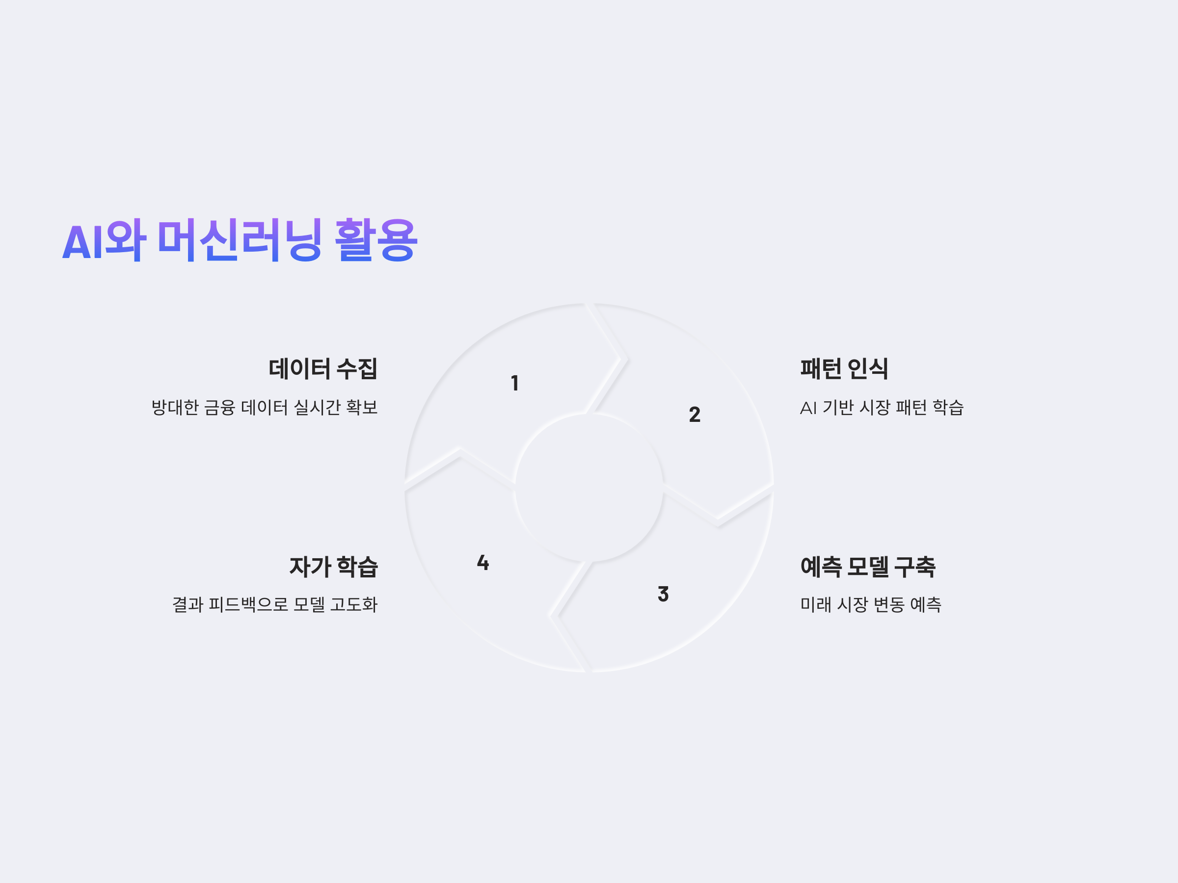최근 퀀트 투자에서는 AI(인공지능)와 머신러닝 기술을 활용하여 더욱 정교한 투자 전략이 개발되고 있습니다. AI는 방대한 양의 데이터를 빠르게 분석하고, 과거의 데이터를 바탕으로 패턴을 인식하여 미래의 시장 변동을 예측합니다. 머신러닝은 이러한 데이터를 기반으로 자가 학습을 통해 점점 더 고도화된 예측 모델을 구축합니다.