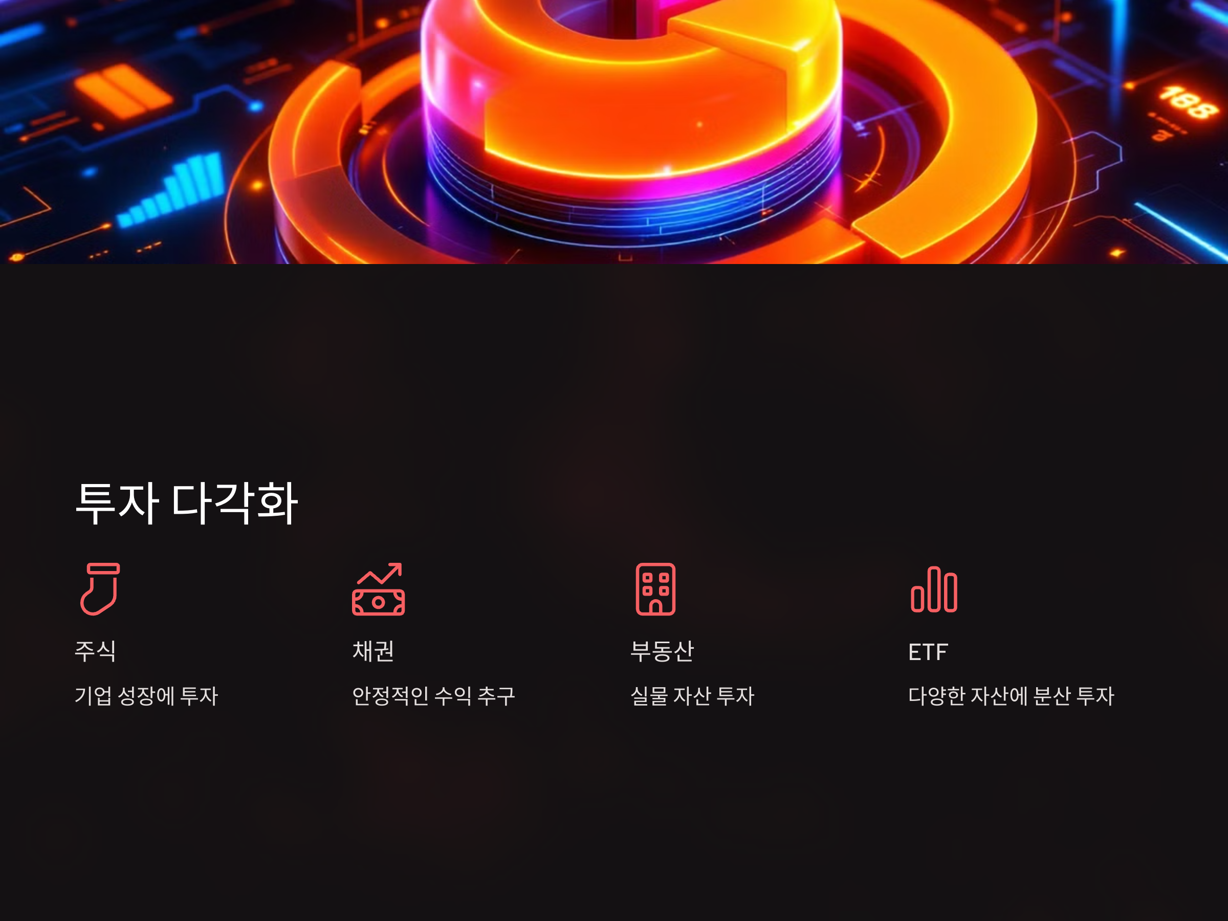 주식, 채권, 부동산, ETF 등 다양한 자산에 투자하여 리스크를 분산시키는 것이 중요합니다. 특히, 최근에는 ESG 투자와 디지털 자산에 대한 관심이 높아지고 있으므로 이러한 분야를 고려하는 것도 좋습니다