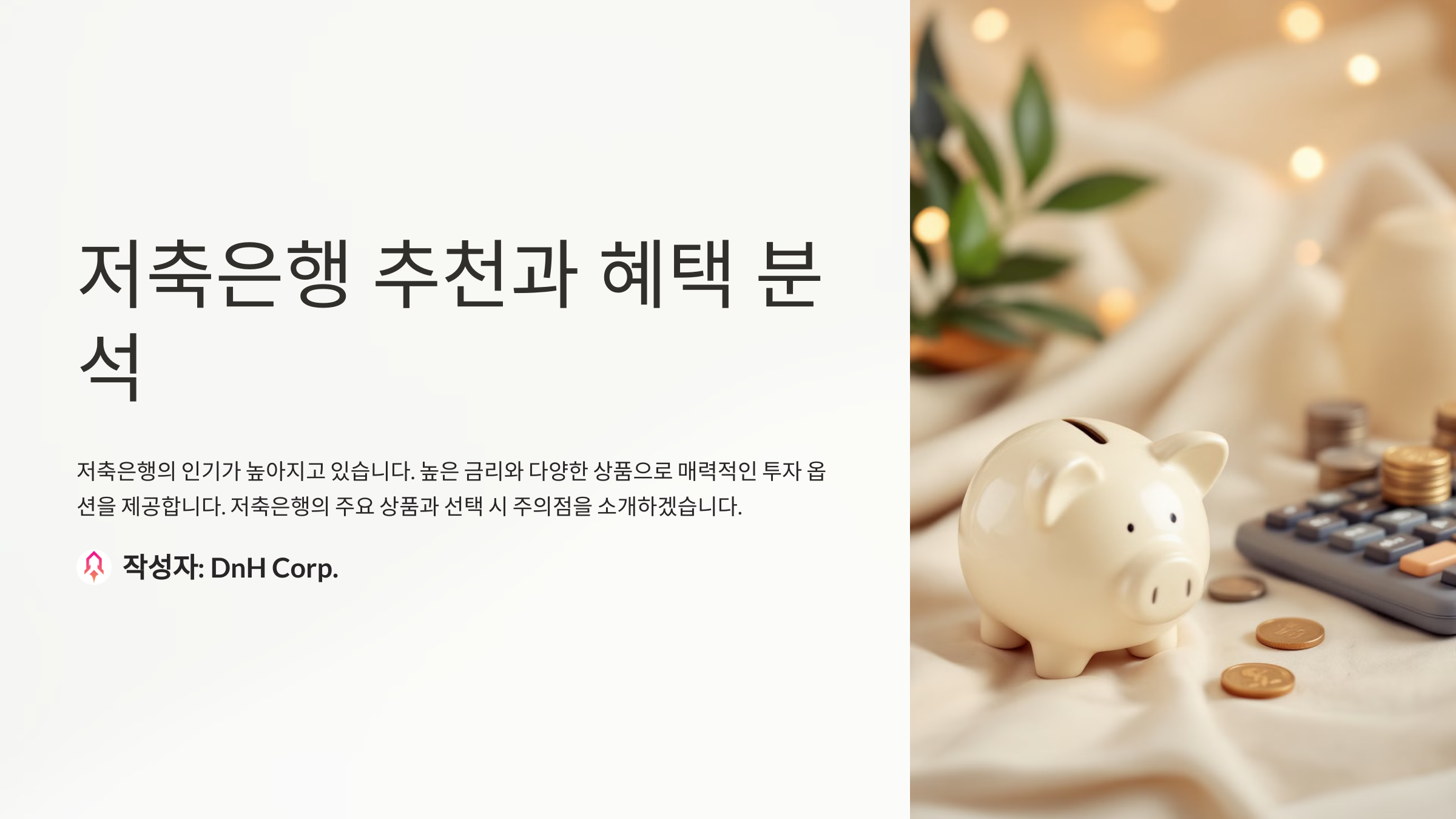저축은행의 가장 큰 장점은 일반 시중은행 대비 상대적으로 높은 금리를 제공한다는 것입니다. 이는 저축은행이 기본적으로 중소기업 및 개인을 주요 대상으로 하기 때문에, 시중은행보다 더 공격적인 금리 정책을 펼치는 경우가 많기 때문입니다. 하지만 높은 금리에는 리스크도 따릅니다. 저축은행의 재정 건전성이나 예금자 보호 한도 등을 충분히 고려한 후 상품을 선택하는 것이 좋습니다.