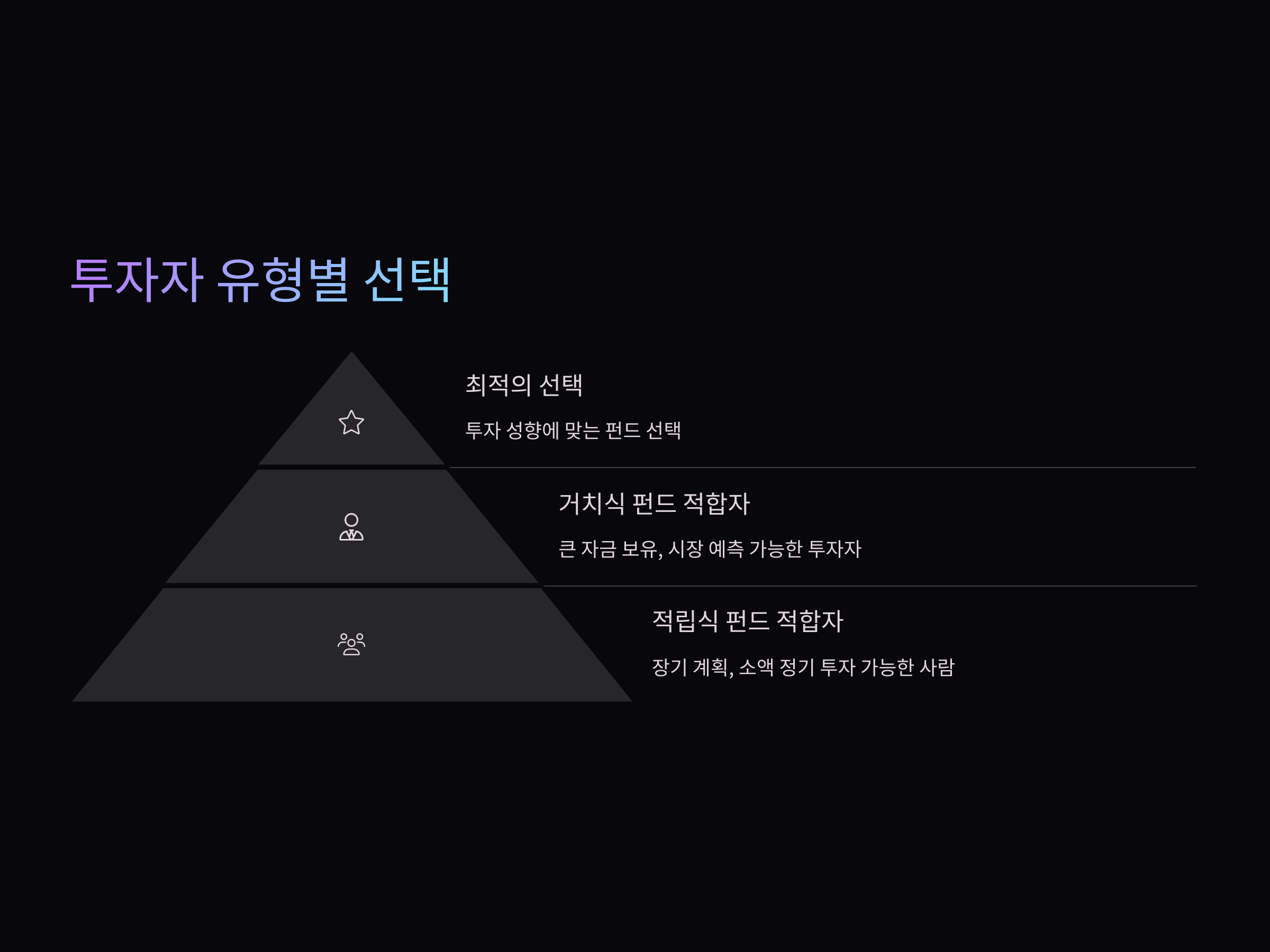 - 적립식 펀드: 장기적인 투자 계획을 가진 사람들에게 적합하며, 작은 금액부터 시작 가능.