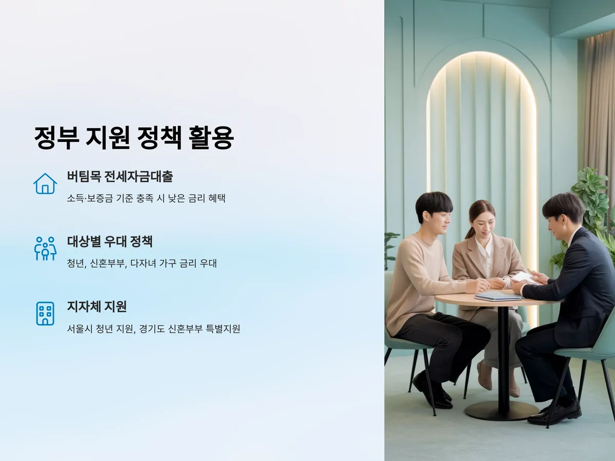 정부는 서민의 주거 안정을 위해 다양한 전세자금대출 이자 지원 정책을 시행하고 있습니다. 대표적인 것이 ‘버팀목 전세자금대출’이며, 소득 및 보증금 기준을 충족하면 낮은 금리로 전세대출이 가능합니다. 특히 청년, 신혼부부, 다자녀 가구 등을 대상으로 한 금리 우대 정책도 다양하게 운영됩니다.