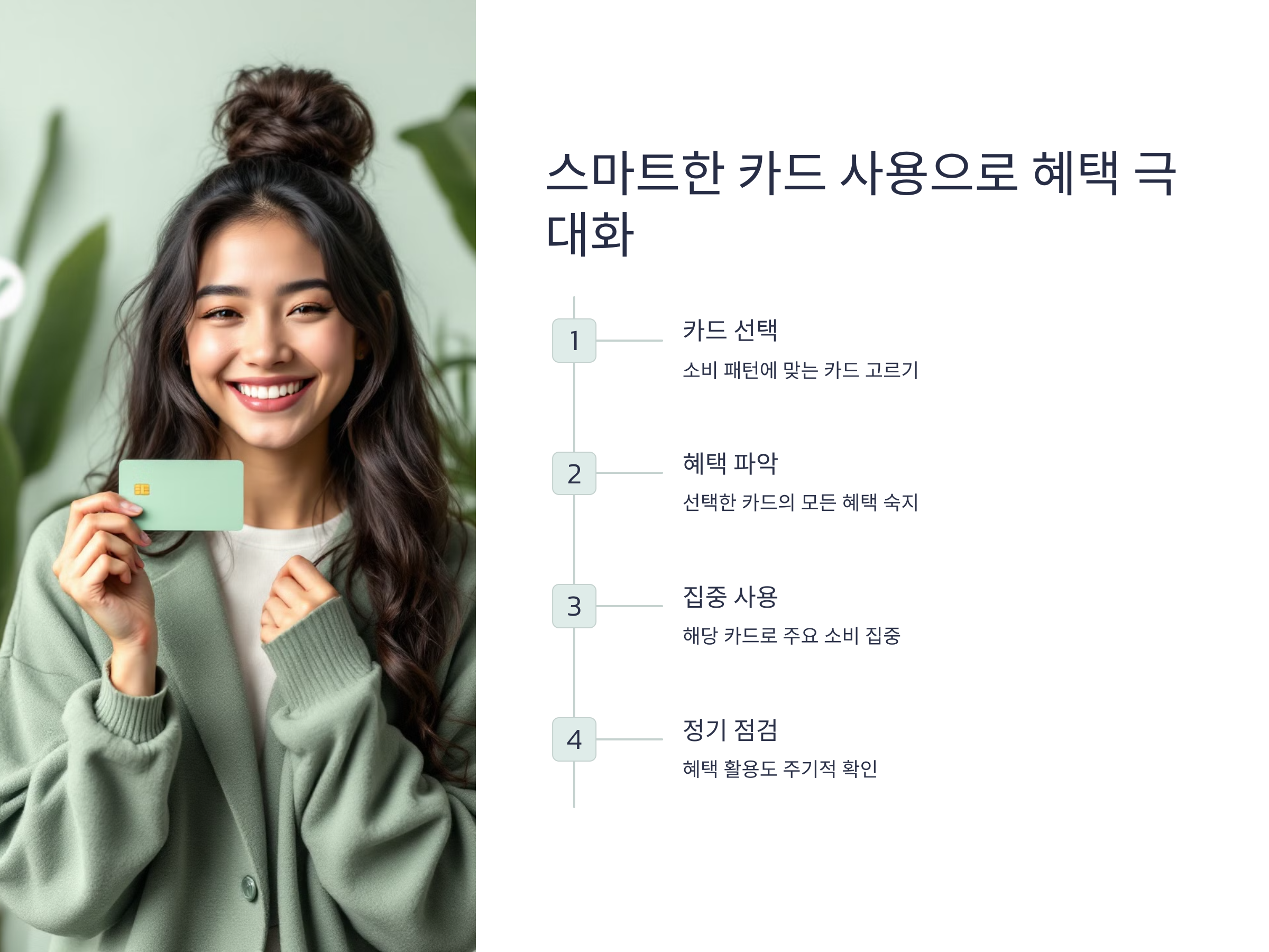 전월 실적 조건이 없는 카드를 선택하는 것만으로도 많은 혜택을 누릴 수 있지만, 어떻게 혜택을 최대한 활용할지에 대한 전략도 중요합니다. 카드의 혜택을 제대로 누리려면 소비 패턴에 맞춰 카드를 선택하는 것이 중요합니다.