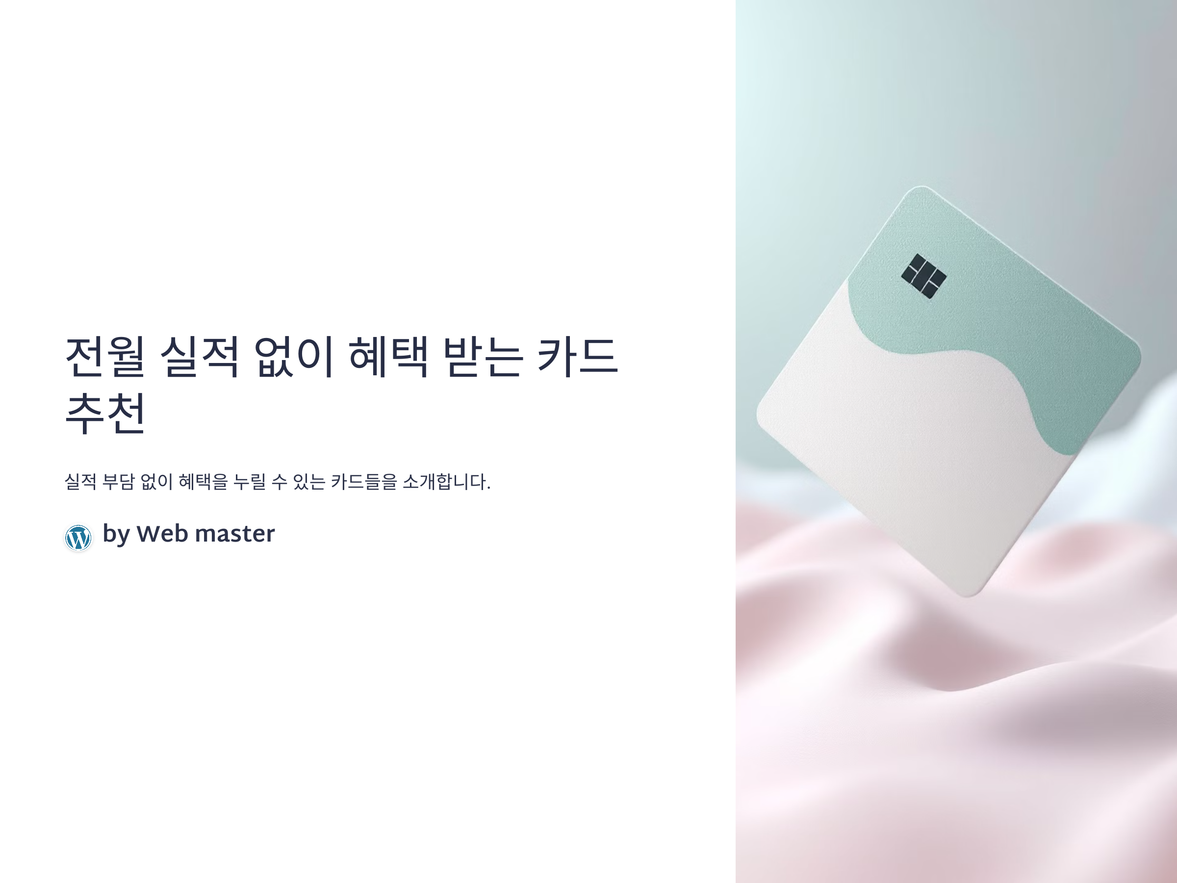 전월 실적 없이도 혜택을 누릴 수 있는 카드들을 선택하면, 매월 실적을 채우기 위한 스트레스를 줄일 수 있습니다. 다양한 혜택을 잘 활용하여, 더 스마트하게 소비하세요. 선택한 카드로 최대한의 혜택을 누려보세요!