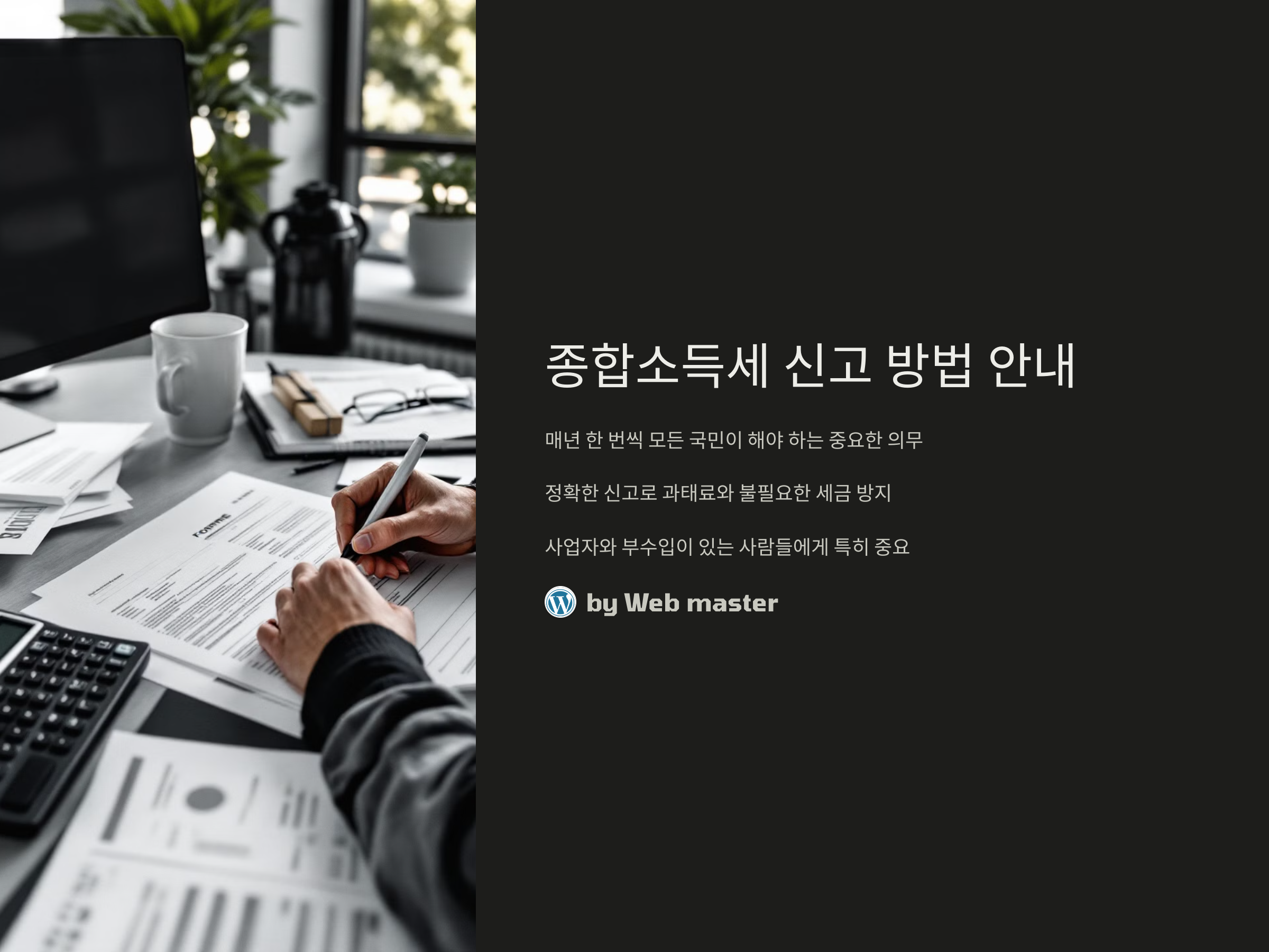- 제출 기한 준수: 종합소득세 신고는 매년 5월 31일까지 제출해야 합니다. 이 기한을 놓치지 않도록 주의해야 합니다.