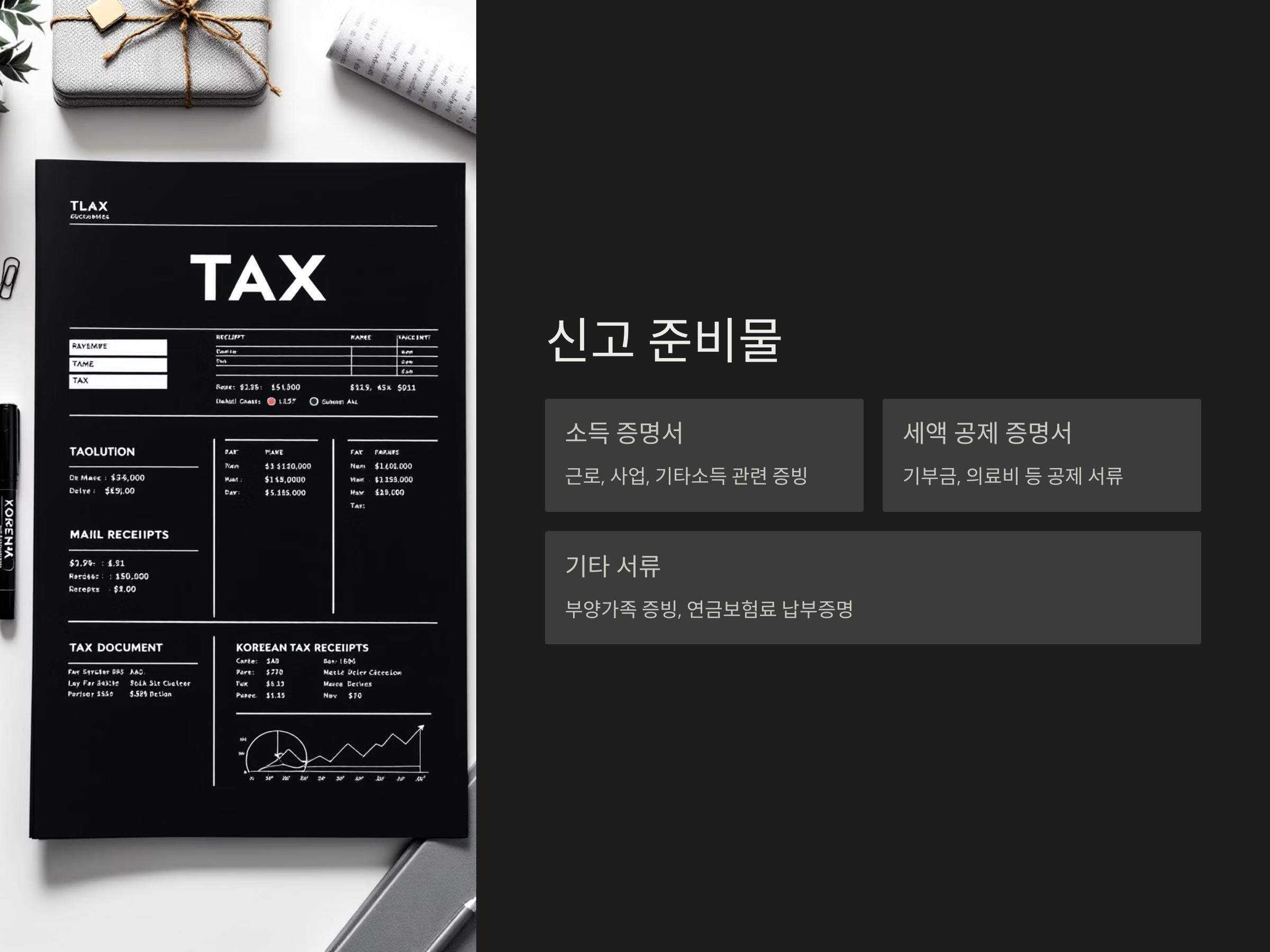 - 세액 공제 증명서 (기부금, 의료비 등 공제 항목 관련 서류)