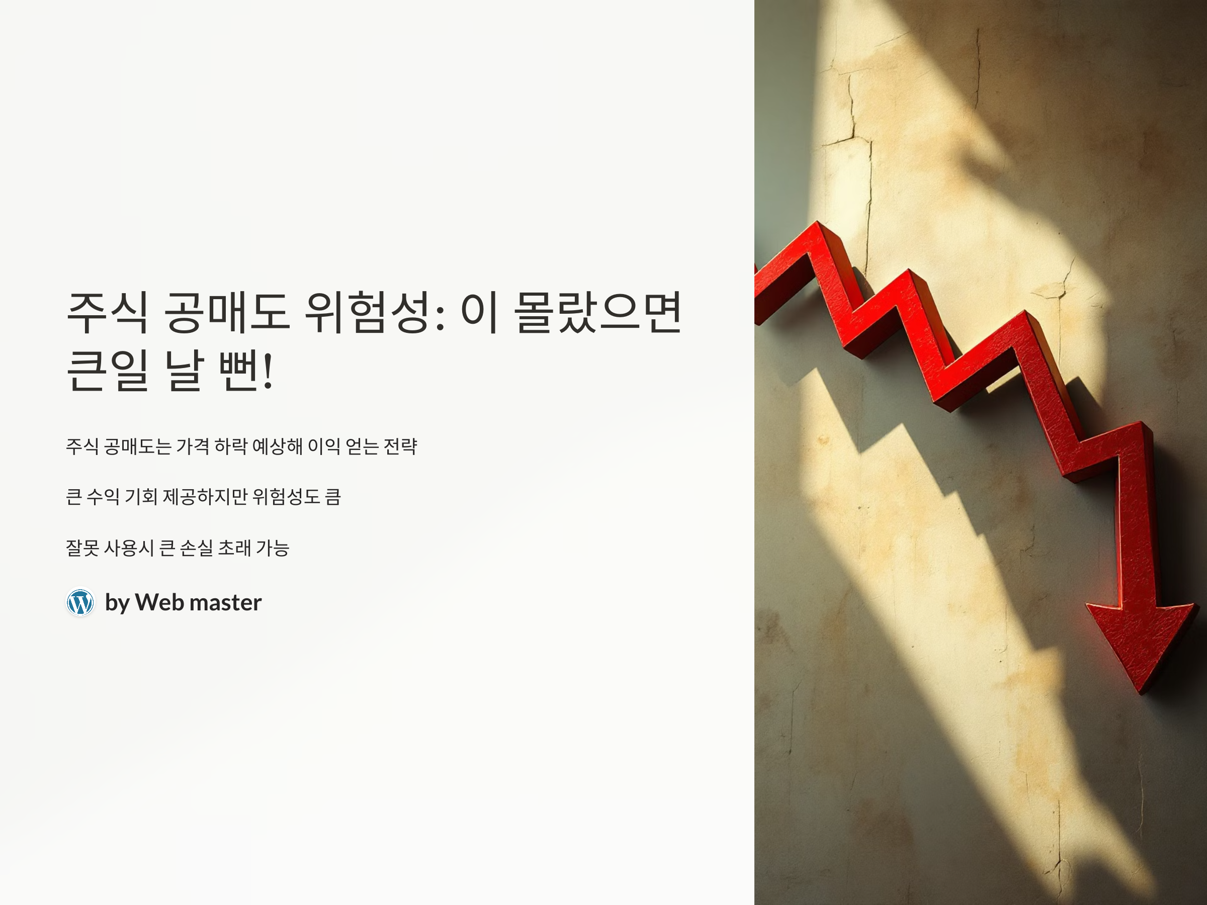 주식 공매도는 주식시장에서 가격 하락을 예상하고 그에 대한 이익을 얻는 전략으로, 투자자들에게 큰 수익을 안겨줄 수 있는 기회를 제공합니다. 하지만, 이 전략이 가진 위험성은 크고, 잘못 사용될 경우 큰 손실을 초래할 수 있습니다. 공매도는 단기적인 시장 변동성을 이용한 거래 방식으로, 장기적인 투자와는 다른 성격을 지니고 있습니다. 오늘은 주식 공매도의 위험성과 그에 대한 대처 방안을 자세히 알아보겠습니다.