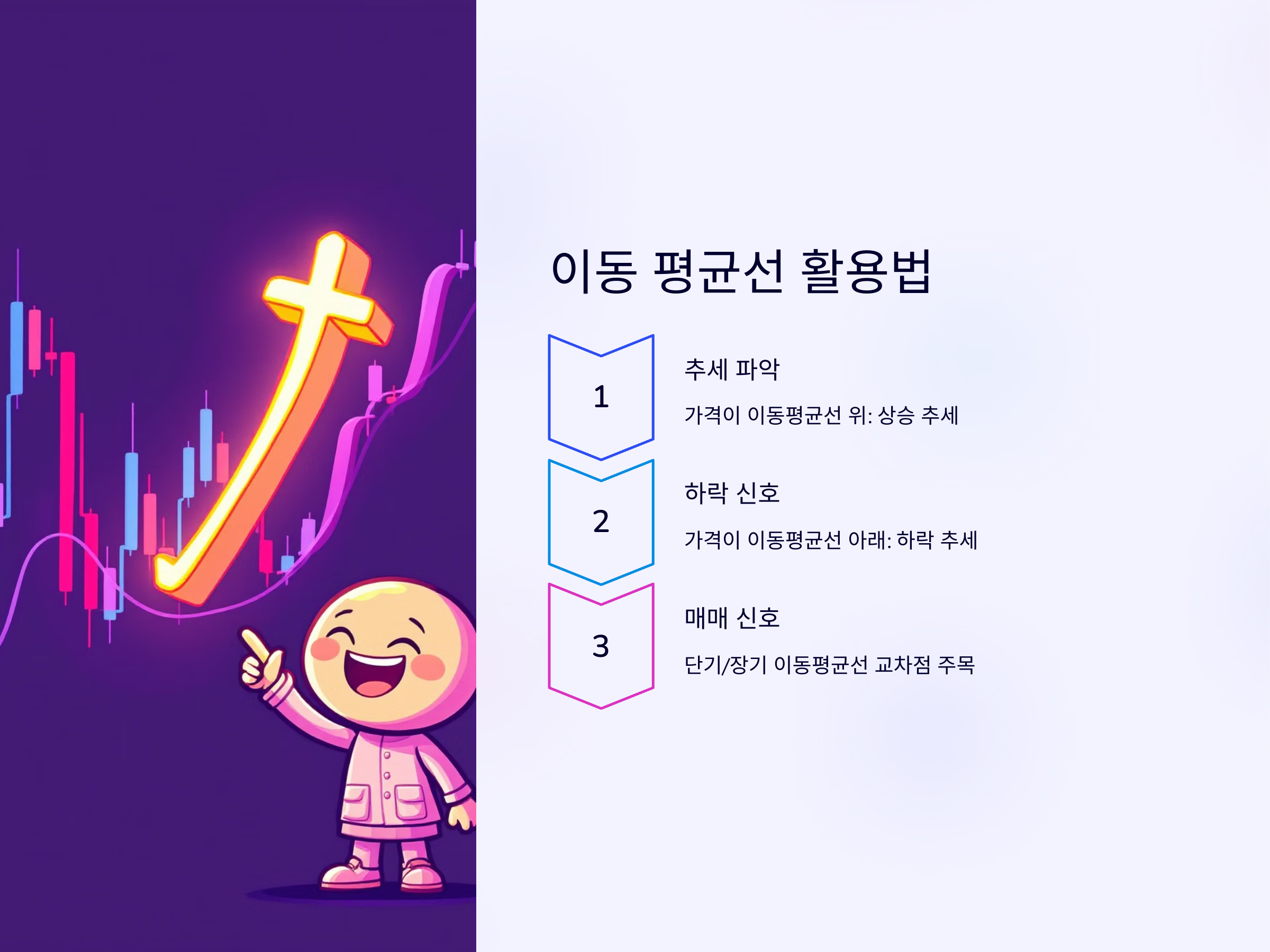 이동 평균선은 주식 가격의 평균을 나타내며, 이를 통해 가격의 추세를 파악할 수 있습니다. 주식이 이동 평균선 위에 있을 때는 상승 추세로 판단하고, 아래에 있을 때는 하락 추세로 판단하는 것이 일반적입니다. 또한, 단기 이동 평균선과 장기 이동 평균선이 교차할 때는 중요한 매매 신호로 해석됩니다. 단기 트레이딩에서는 이 교차점을 주의 깊게 살펴봐야 합니다.