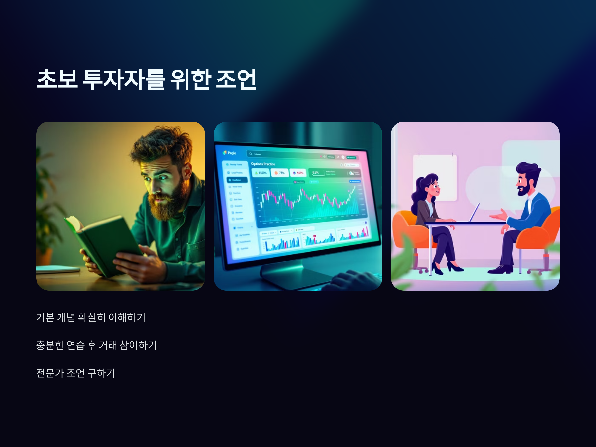 옵션 거래는 그 자체로 많은 위험을 동반하지만, 이를 잘 활용하면 다른 투자 방식보다 더 높은 수익을 창출할 수 있는 잠재력을 가집니다. 따라서 옵션을 처음 접하는 투자자는 반드시 기본적인 개념을 확실히 이해하고, 충분히 연습한 후에 거래에 참여하는 것이 좋습니다.