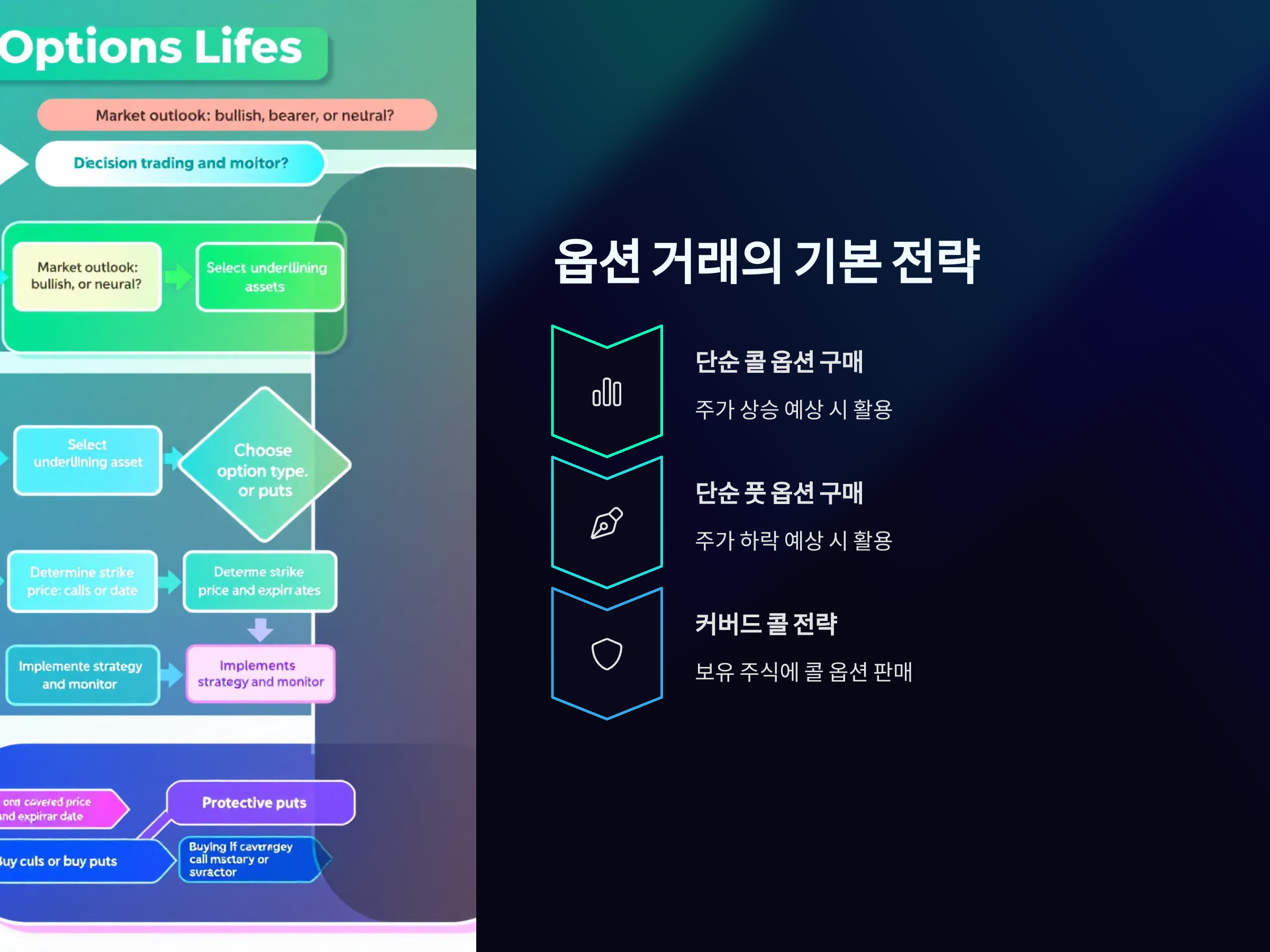 옵션 거래를 실전에서 활용할 때는 주식 시장의 흐름을 면밀히 분석하고, 적절한 전략을 세우는 것이 중요합니다. 주식의 가격이 상승할 것으로 예측되면 콜 옵션을, 하락할 것으로 예측되면 풋 옵션을 활용할 수 있습니다. 또한, 다양한 전략을 통해 리스크를 최소화하고 수익을 극대화하는 방법도 있습니다.
