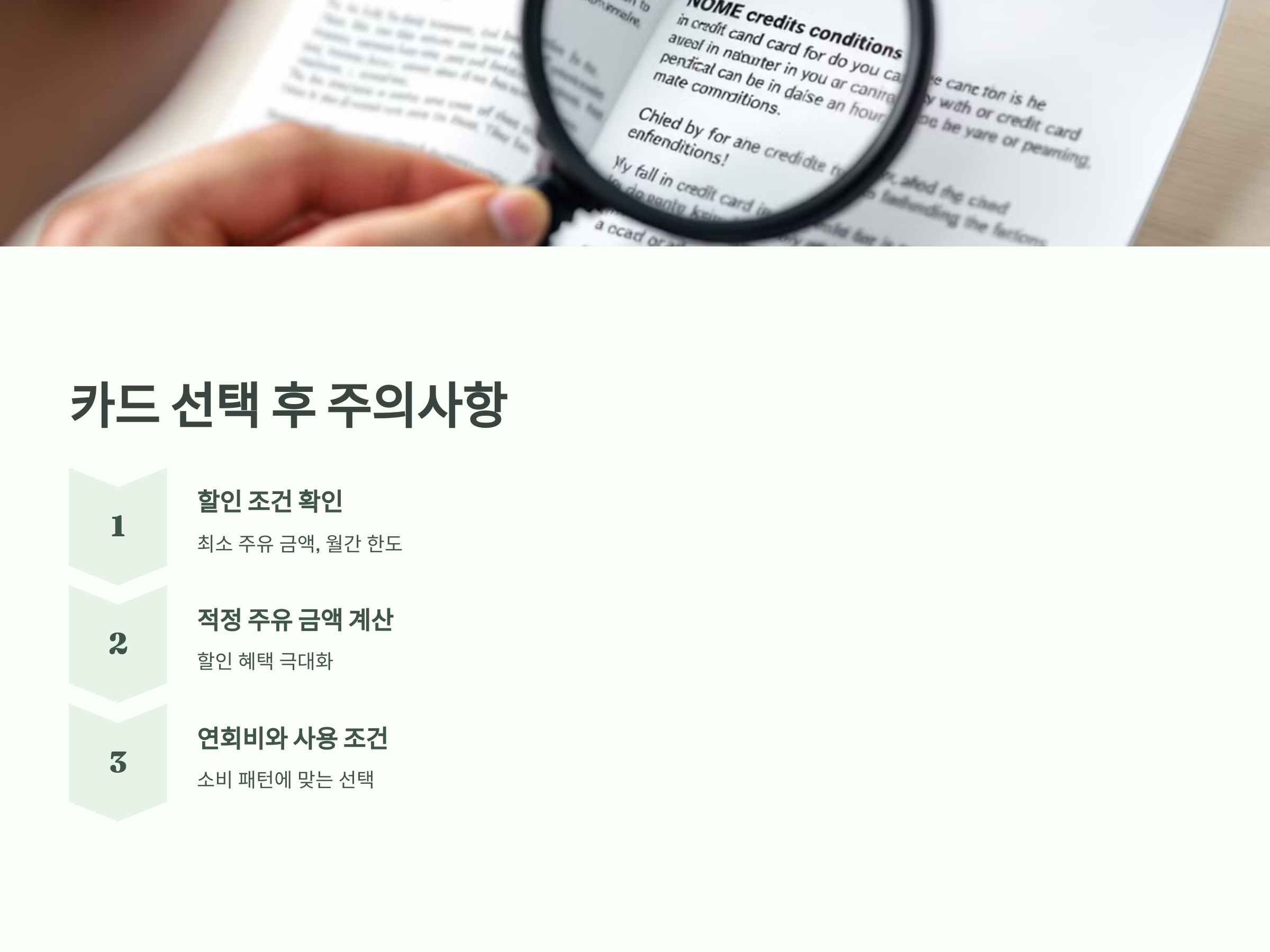 카드 연회비와 사용 조건도 중요한 요소입니다. 예를 들어, 연회비가 비싼 카드일 경우 주유 할인 혜택이 아무리 좋아도 그만큼 사용이 부담스러울 수 있습니다. 카드를 사용할 때, 자신의 소비 패턴에 맞는 카드를 선택하는 것이 중요합니다.