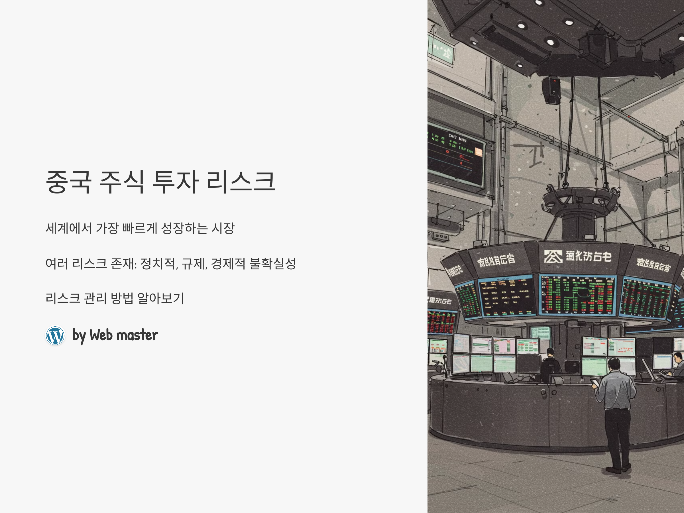 중국 주식 시장은 세계에서 가장 빠르게 성장하는 시장 중 하나로, 많은 투자자들이 이 시장에 뛰어들고 있습니다. 그러나 이 시장에는 여전히 여러 가지 리스크가 존재합니다. 정치적 리스크, 규제 리스크, 경제적 불확실성 등은 중국 주식 투자에서 고려해야 할 중요한 요소들입니다. 이번 포스팅에서는 중국 주식에 투자할 때 발생할 수 있는 주요 리스크를 살펴보고, 이를 어떻게 관리할 수 있을지에 대해 알아보겠습니다.