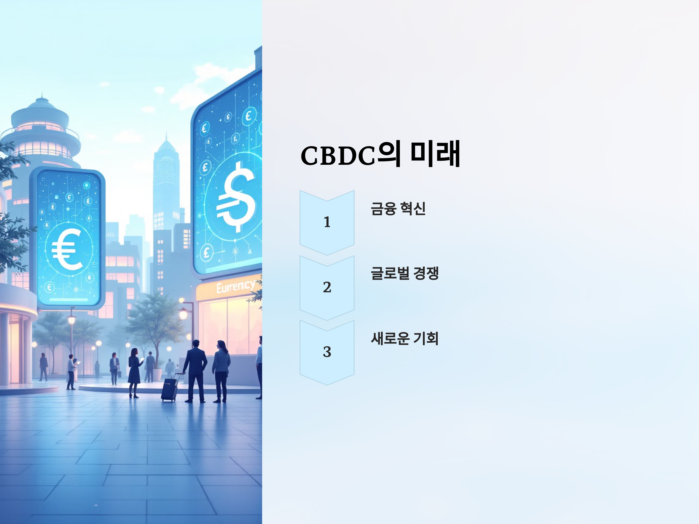 중앙은행 디지털 화폐(CBDC)는 금융 혁신을 이끄는 중요한 기술로 자리잡을 것입니다. 이로 인해 금융 거래의 효율성과 안전성이 향상되고, 글로벌 금융 시스템의 새로운 패러다임이 형성될 것입니다. 각국의 CBDC 도입이 어떻게 진행될지, 그리고 그것이 실제로 금융 시장에 어떤 영향을 미칠지 주목해야 할 시점입니다.