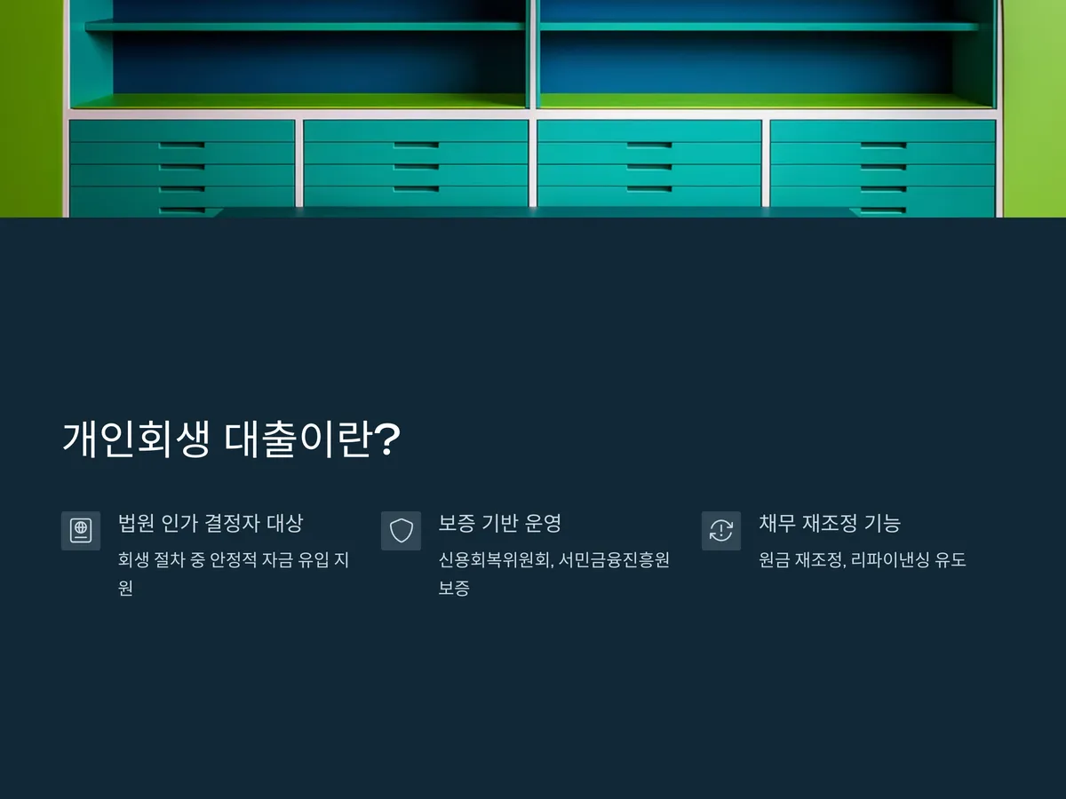 개인회생 대출은 법원의 개인회생 인가 결정을 받은 사람을 대상으로, 회생 절차 동안 또는 이후에 합법적이고 안정적인 자금 유입을 가능하게 해주는 금융상품입니다. 일반적으로 이 상품은 신용회복위원회 또는 서민금융진흥원의 보증 아래 진행되며, 민간 금융기관에서도 특화 상품을 운영하기도 합니다.