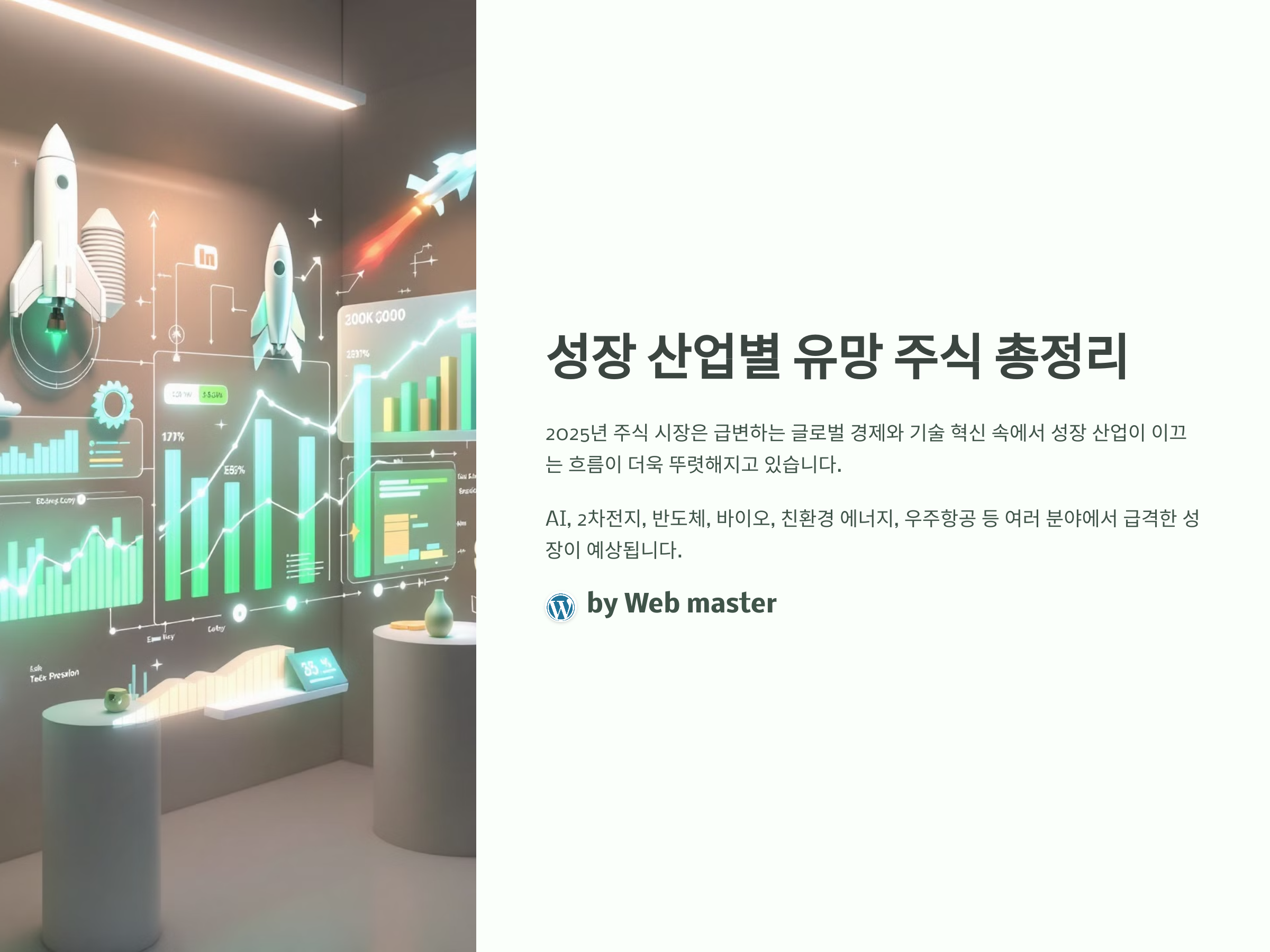 2025년 주식 시장은 급변하는 글로벌 경제와 기술 혁신 속에서 성장 산업이 이끄는 흐름이 더욱 뚜렷해지고 있습니다. 최근 AI, 2차전지, 반도체, 바이오, 친환경 에너지, 우주항공 등 여러 분야에서 급격한 성장이 예상되며, 이에 따라 관련 기업들의 주가도 큰 폭으로 오를 것으로 기대됩니다. 특히, 미국과 중국의 경쟁 심화, ESG 경영 강화, 탄소중립 실현, 우주 개발 경쟁 가속화 등 시대적 변화가 성장 산업별 유망 주식을 선택하는 데 중요한 기준이 되고 있습니다. 실제로 2024년 하반기부터 이들 산업에 대한 기관 자금 유입이 급증했고, 올해 역시 그 흐름이 이어질 것으로 보입니다. 전문가들은 테마에 휩쓸리지 않고 각 산업의 핵심 기업과 기술력을 중심으로 분석해 투자 전략을 세울 것을 권장하고 있습니다. 이번 글에서는 2025년 이후를 이끌 유망 산업과 대표 주식, 그리고 투자 시 참고할 최신 트렌드를 상세하게 소개해드립니다.