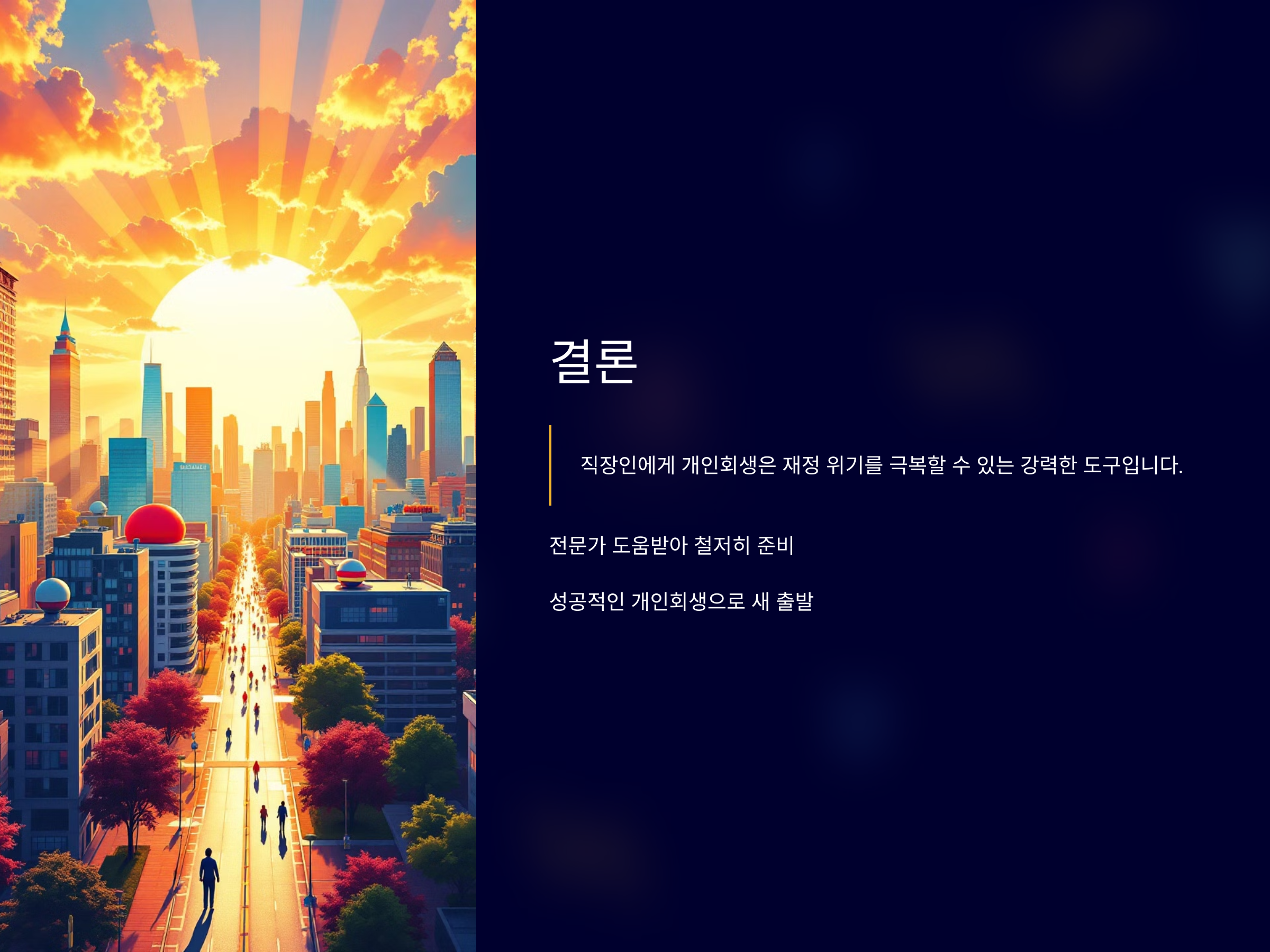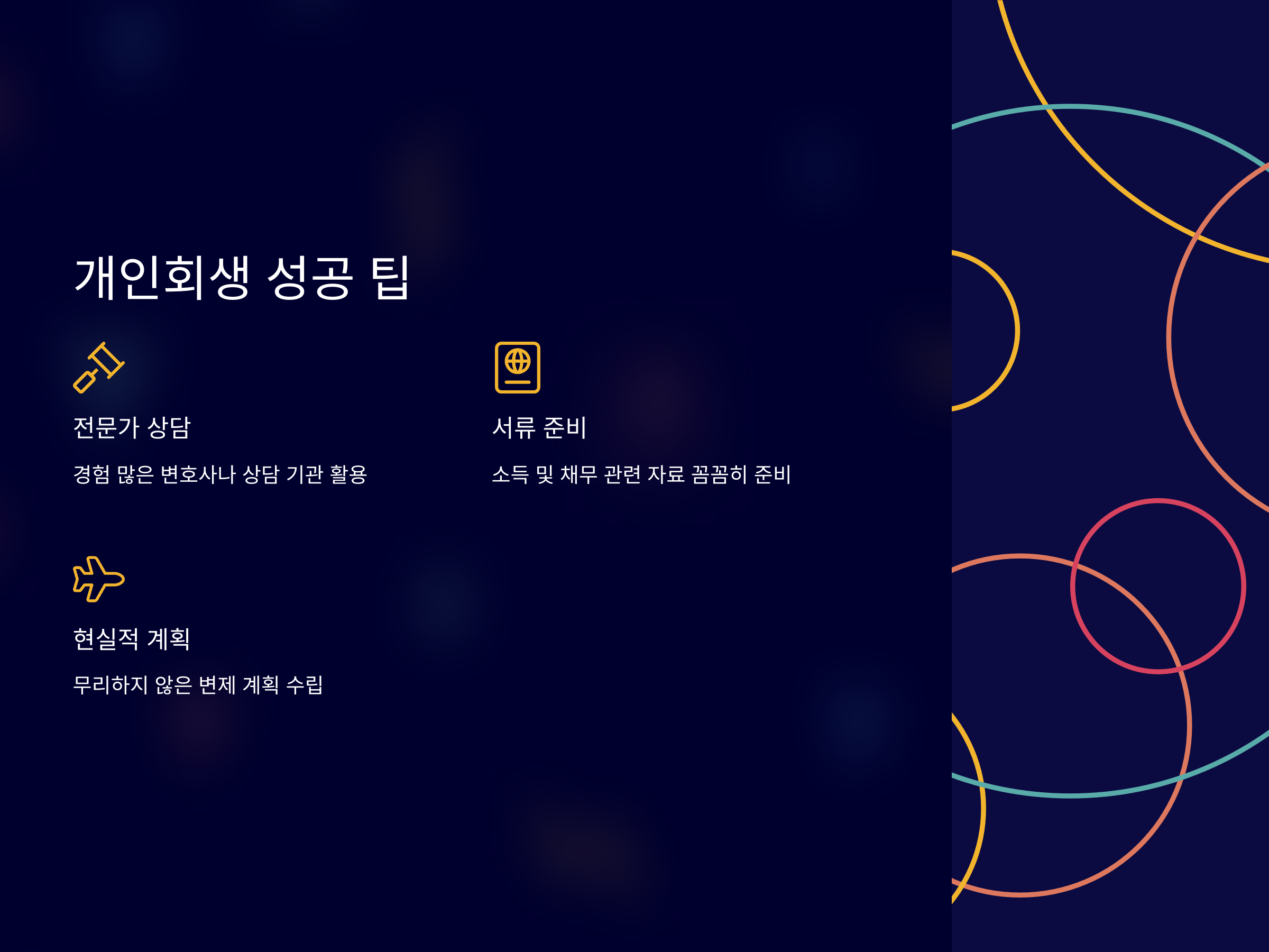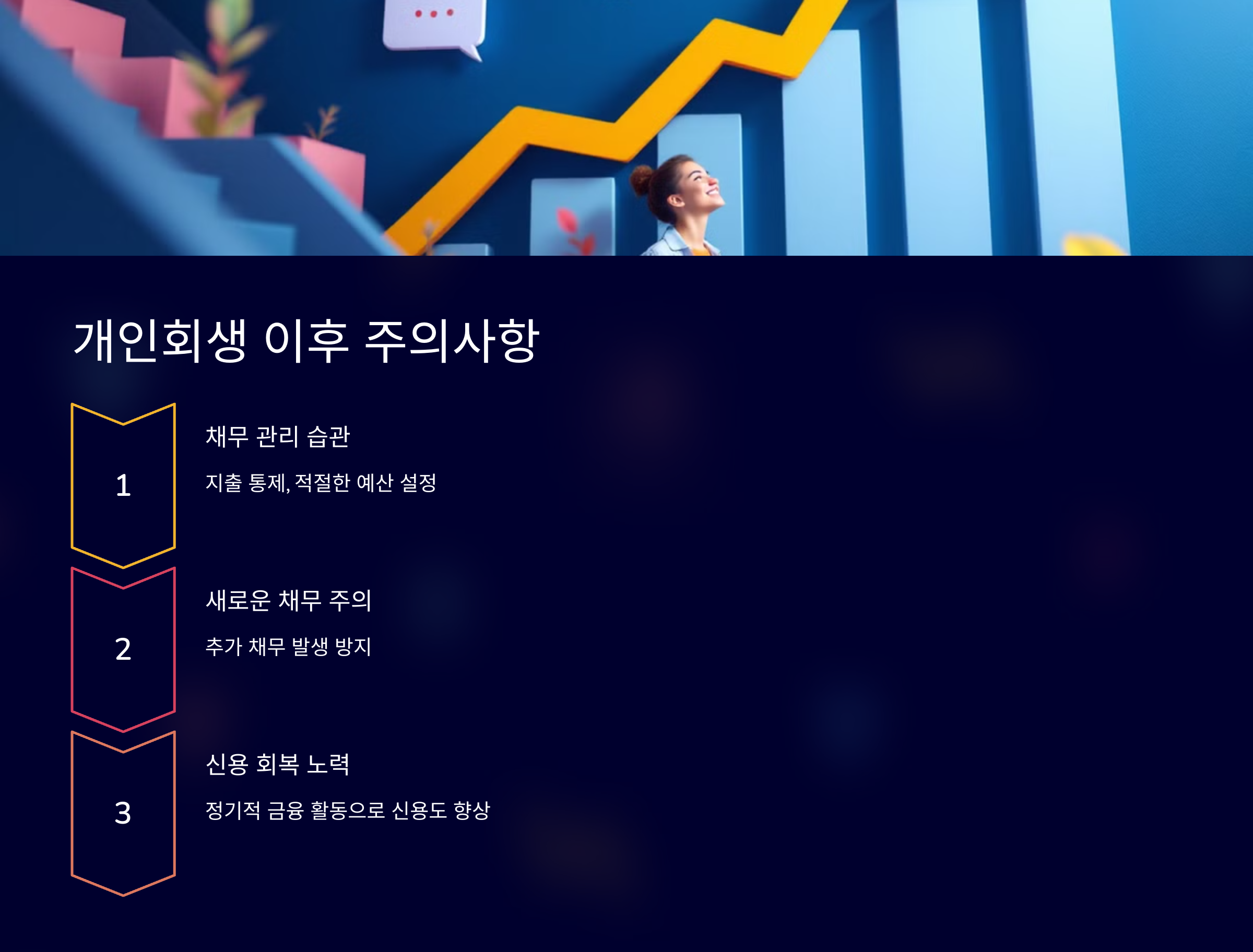 개인회생은 채무 해결의 출발점입니다. 성공적인 재기를 위해 다음을 기억하세요.