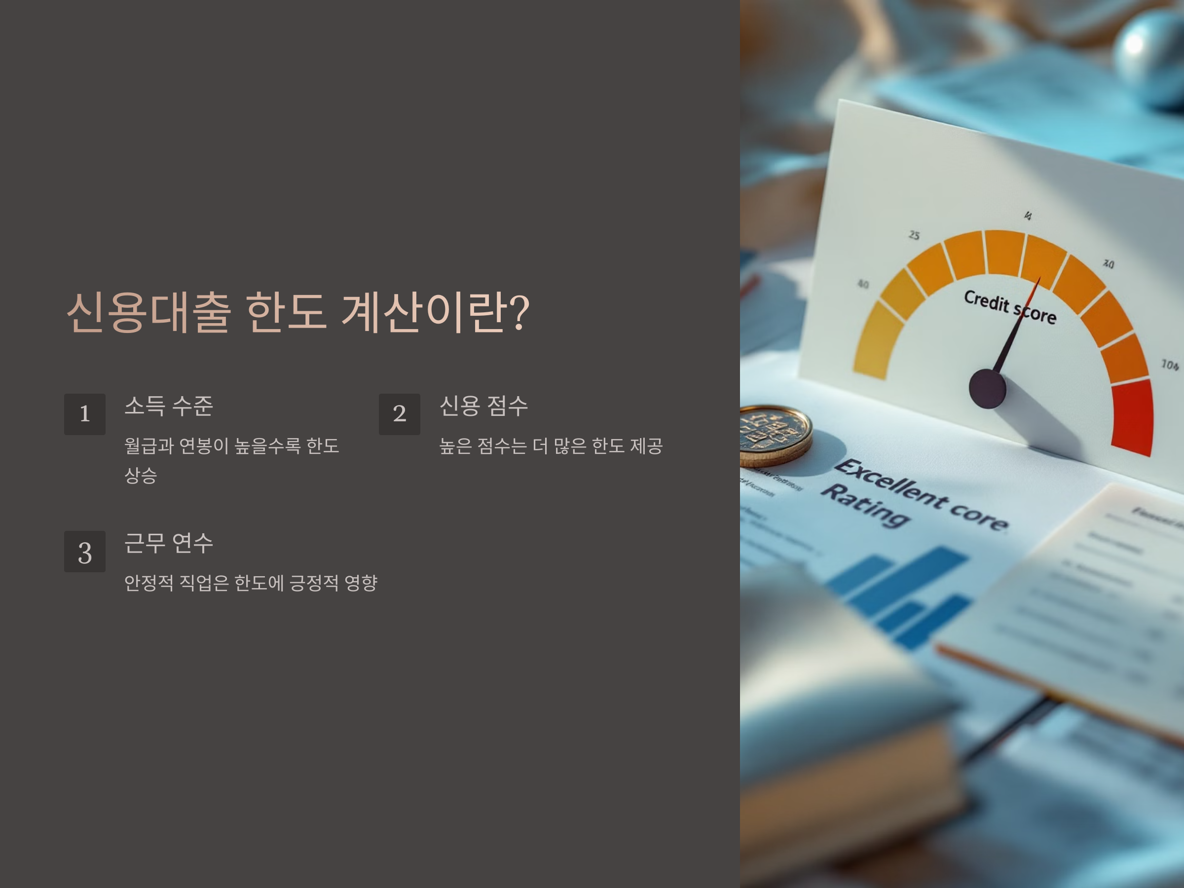 - 신용점수를 반영: 신용점수가 높을수록 대출 한도가 올라갈 수 있습니다. 예를 들어, 신용점수가 800점 이상이라면 한도가 더 높게 설정될 가능성이 큽니다.