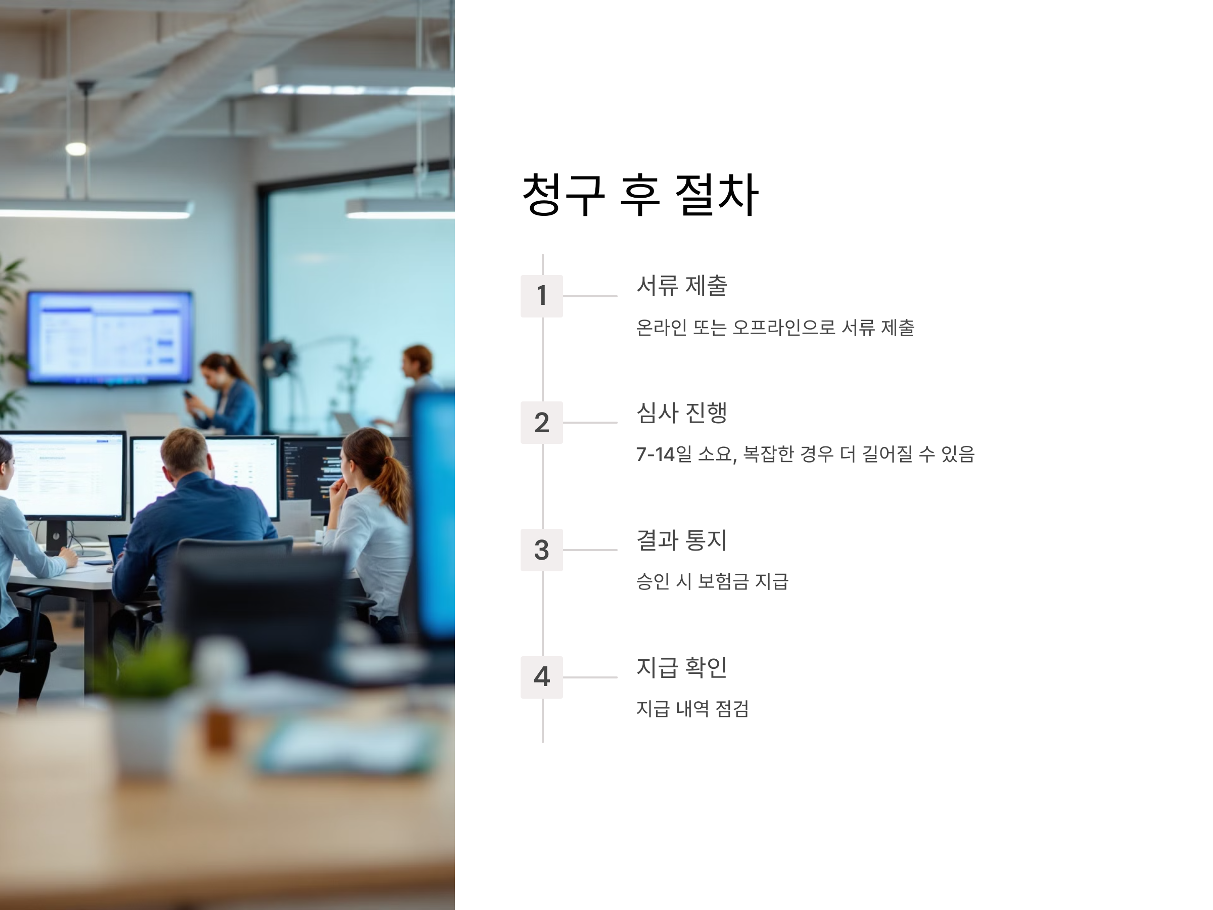 보험 청구 절차를 정확히 알고 준비하면, 훨씬 더 효율적이고 빠르게 보험금을 지급받을 수 있습니다. 이제 복잡해 보이는 절차도 간단하게 따라할 수 있겠죠?