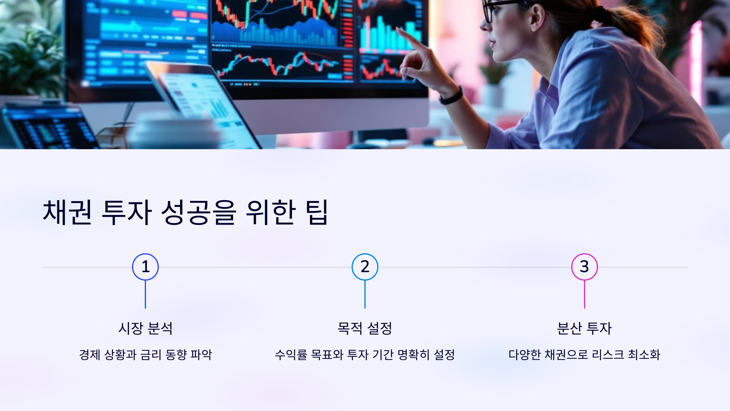 - 분산 투자: 다양한 채권으로 리스크 최소화.