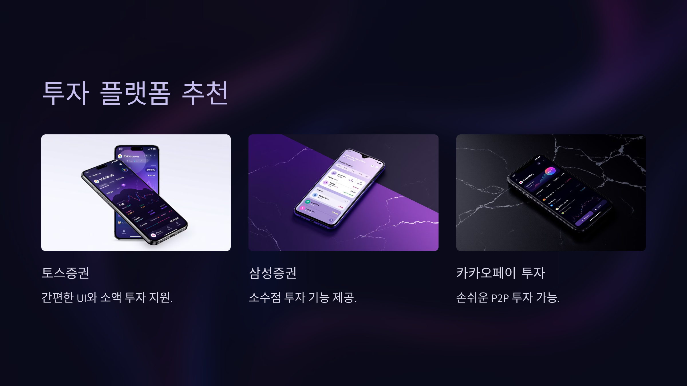 - 플랫폼 추천: 삼성증권, 키움증권 등의 소수점 투자 지원 앱.