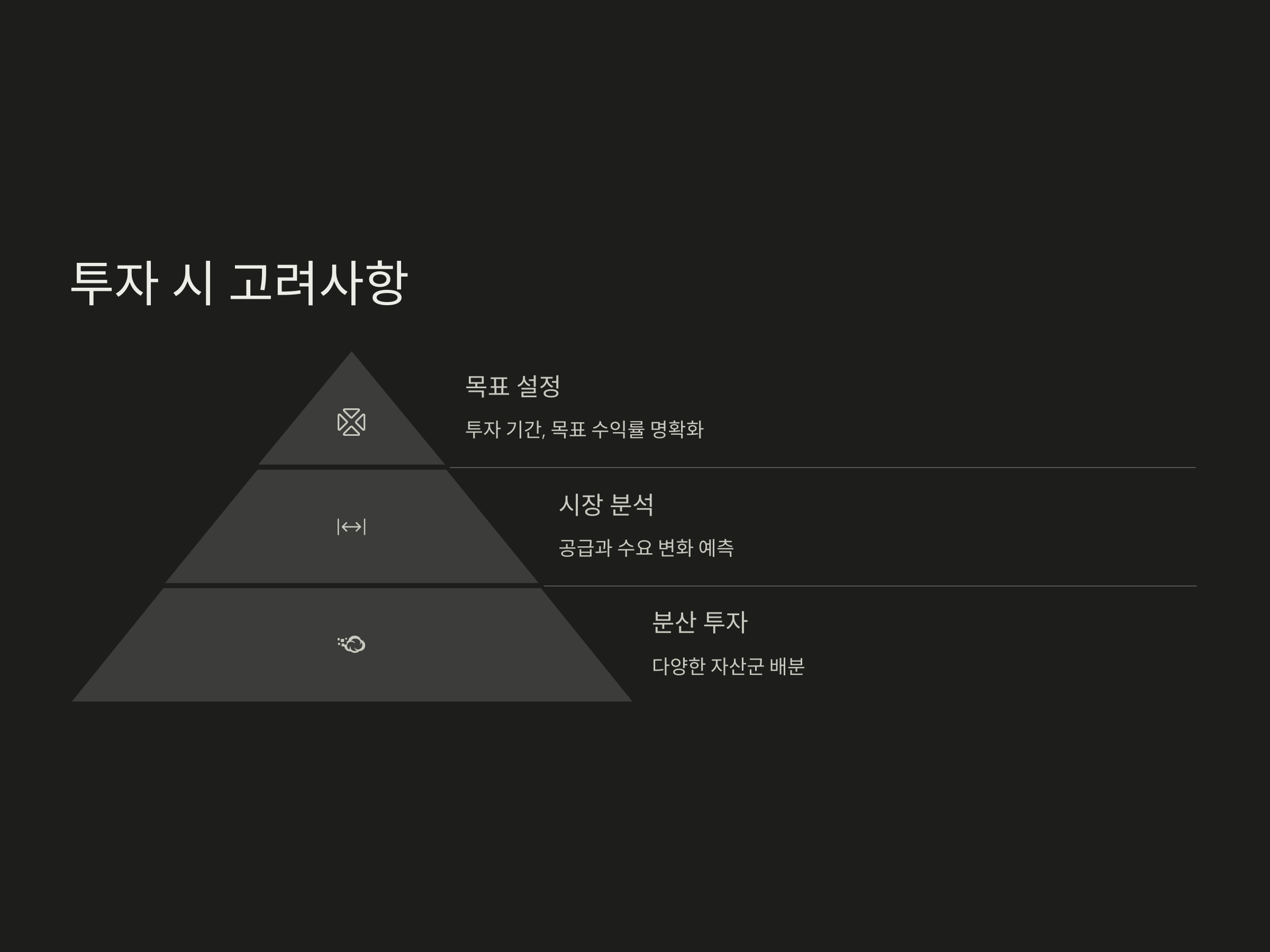 커머더티 투자에 접근할 때는 몇 가지 중요한 사항을 고려해야 합니다. 첫째, 시장 분석이 필수적입니다. 공급과 수요의 변화를 예측하고, 그에 맞는 투자 결정을 내려야 합니다. 또한, 투자 기간과 목표 수익률을 명확히 설정하여 투자 전략을 수립해야 합니다.