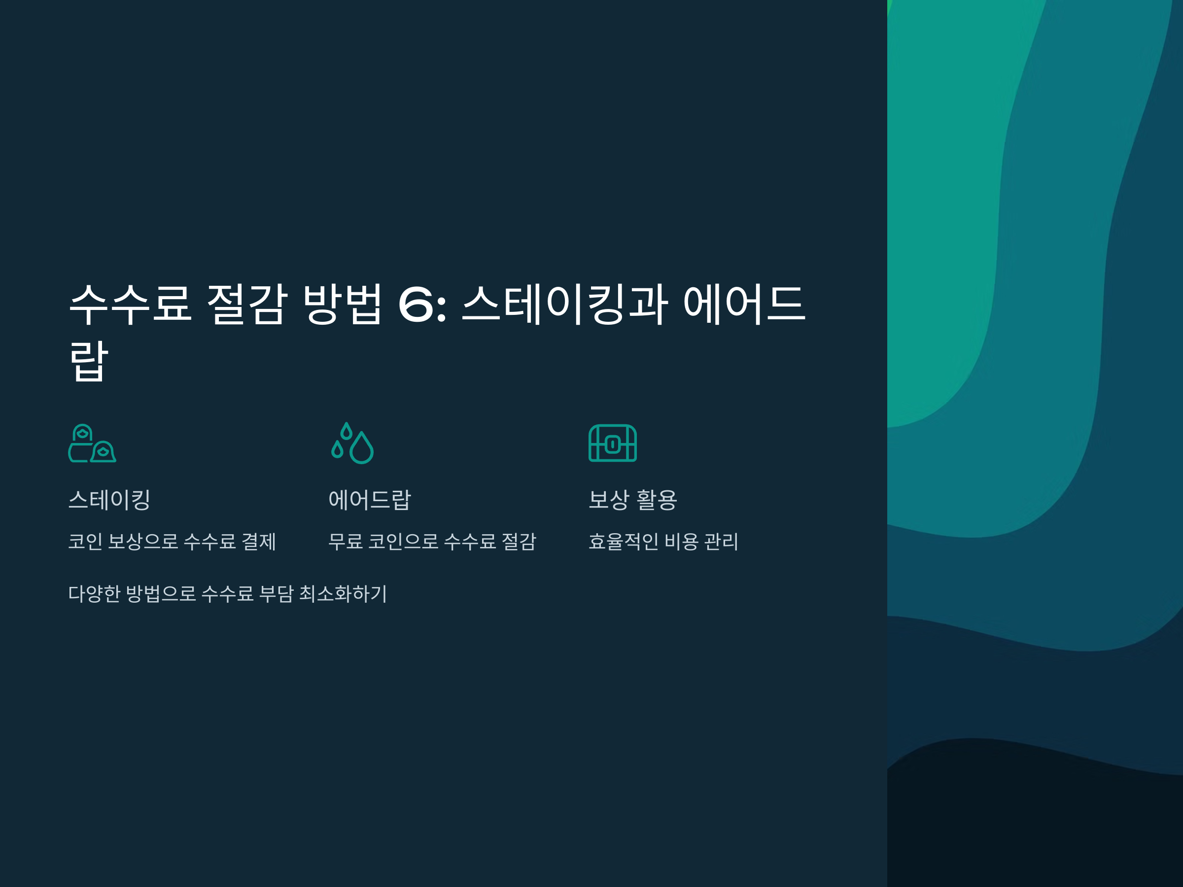 스테이킹과 에어드랍을 통해 얻은 보상으로 수수료를 절감하면 비용을 더욱 효율적으로 관리할 수 있습니다.