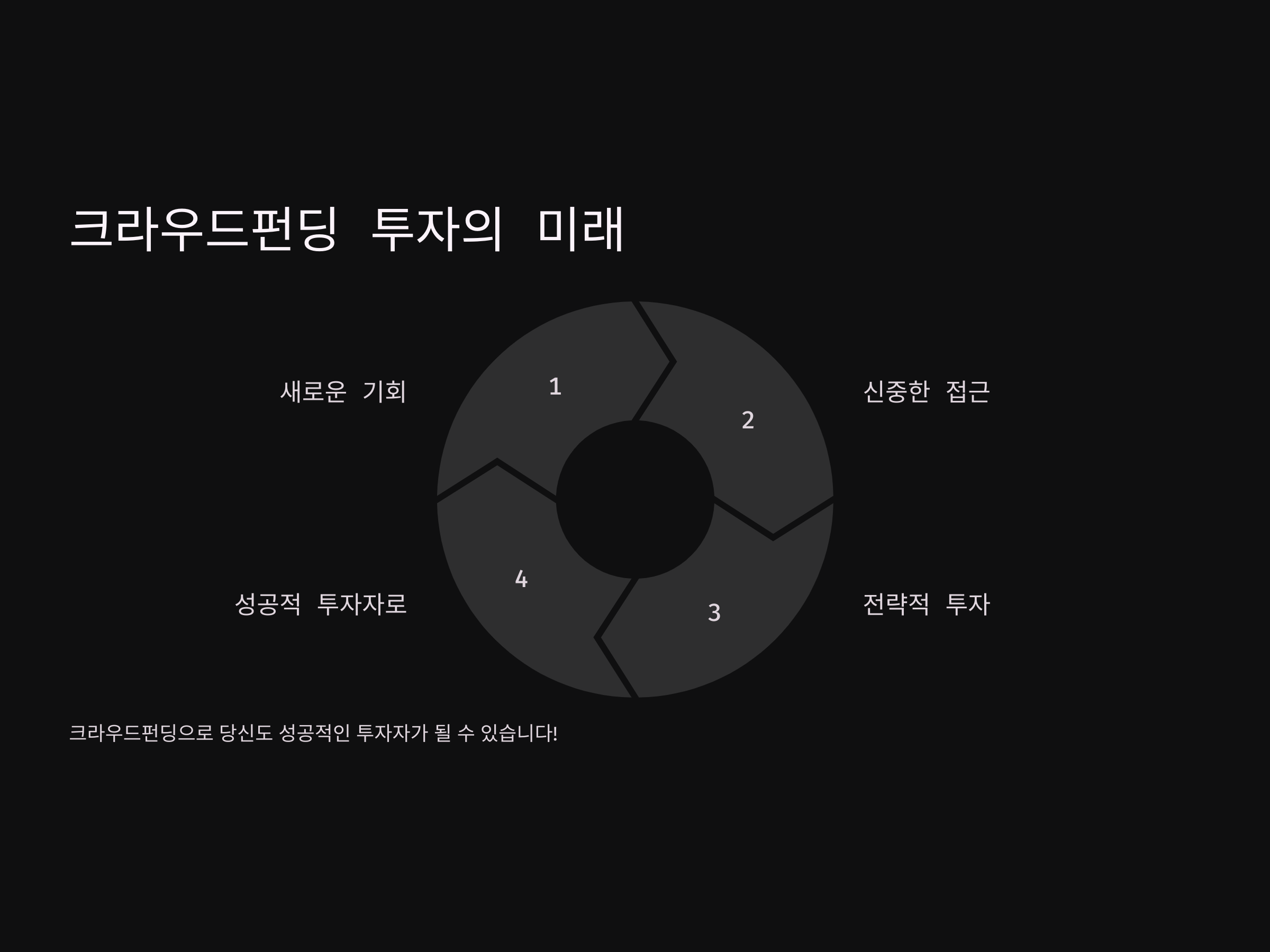 크라우드펀딩 투자는 이제 누구나 쉽게 접근할 수 있는 투자 방식이 되었으며, 투자자들에게 새로운 기회를 제공하고 있습니다. 그러나 그만큼 리스크도 존재하기 때문에 신중한 접근이 필요합니다. 다양한 프로젝트에 소액씩 분산 투자하고, 사업 아이템과 팀의 신뢰성을 분석하는 등 전략적으로 투자하는 것이 중요합니다. 또한, 리스크 관리와 투자의 목적을 명확히 설정하고, 신뢰할 수 있는 플랫폼에서 투자하는 것이 성공적인 투자로 이어질 수 있습니다.