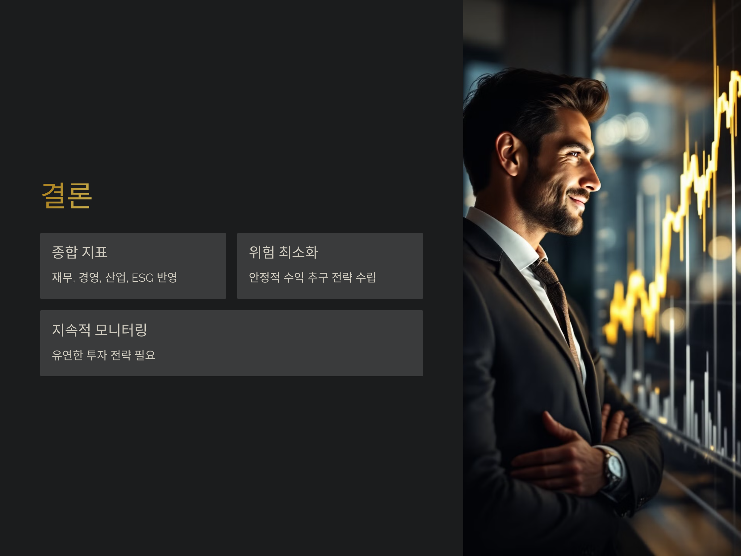 - 경영진 역량: 경영진의 전문성, 경험, 리더십 등을 평가하여 기업의 미래 전망을 예측.