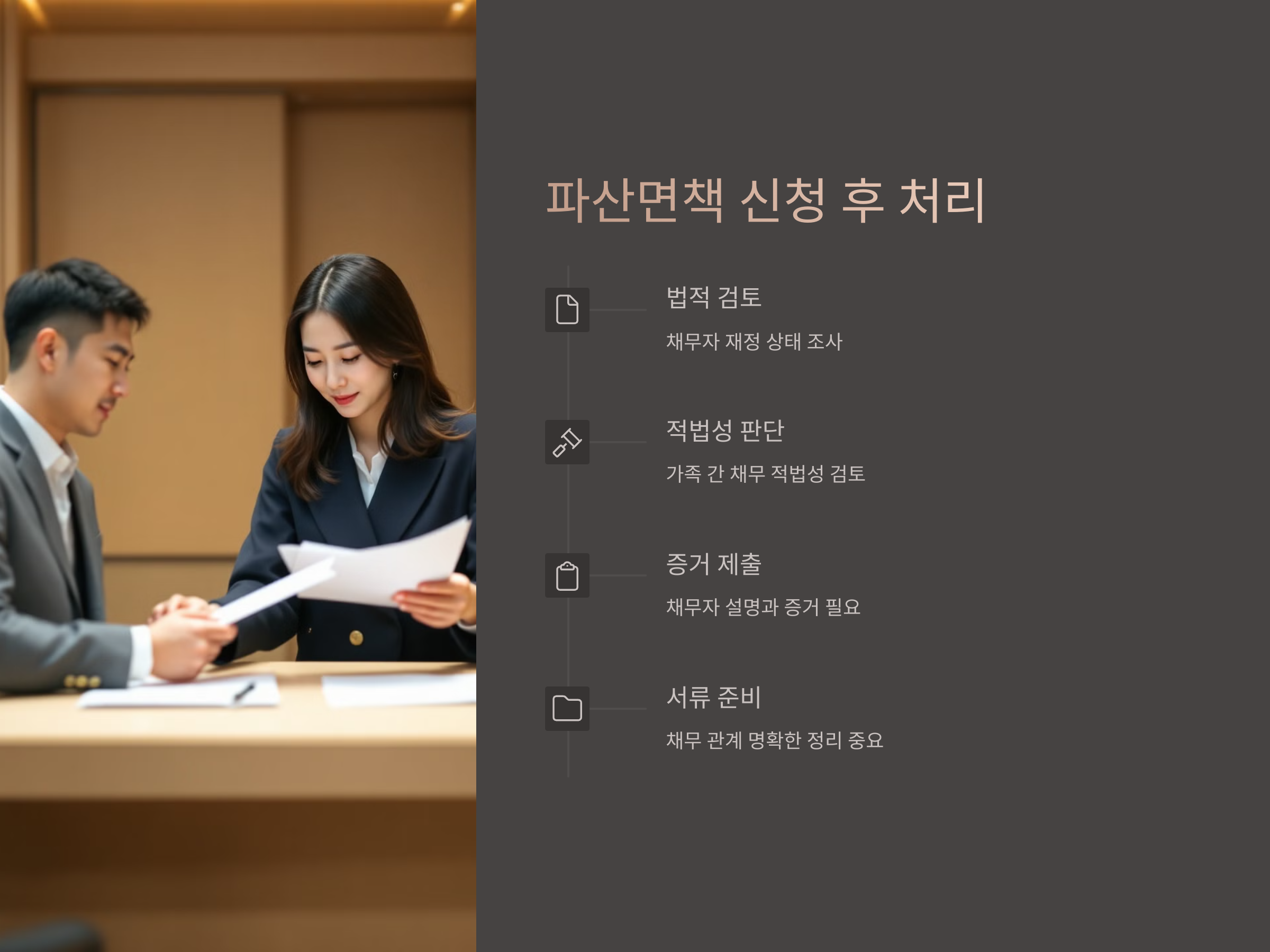 파산면책을 신청한 후에는, 가족 간 채무 관계가 어떻게 처리되는지에 대한 법적 검토가 진행됩니다. 이 과정에서 법원은 채무자의 재정 상태뿐만 아니라, 가족 간의 채무가 적법한 거래로 이루어졌는지를 검토합니다. 만약 법적으로 인정되지 않는 채무가 포함되었다면, 그 채무는 면책에서 제외될 수 있습니다.