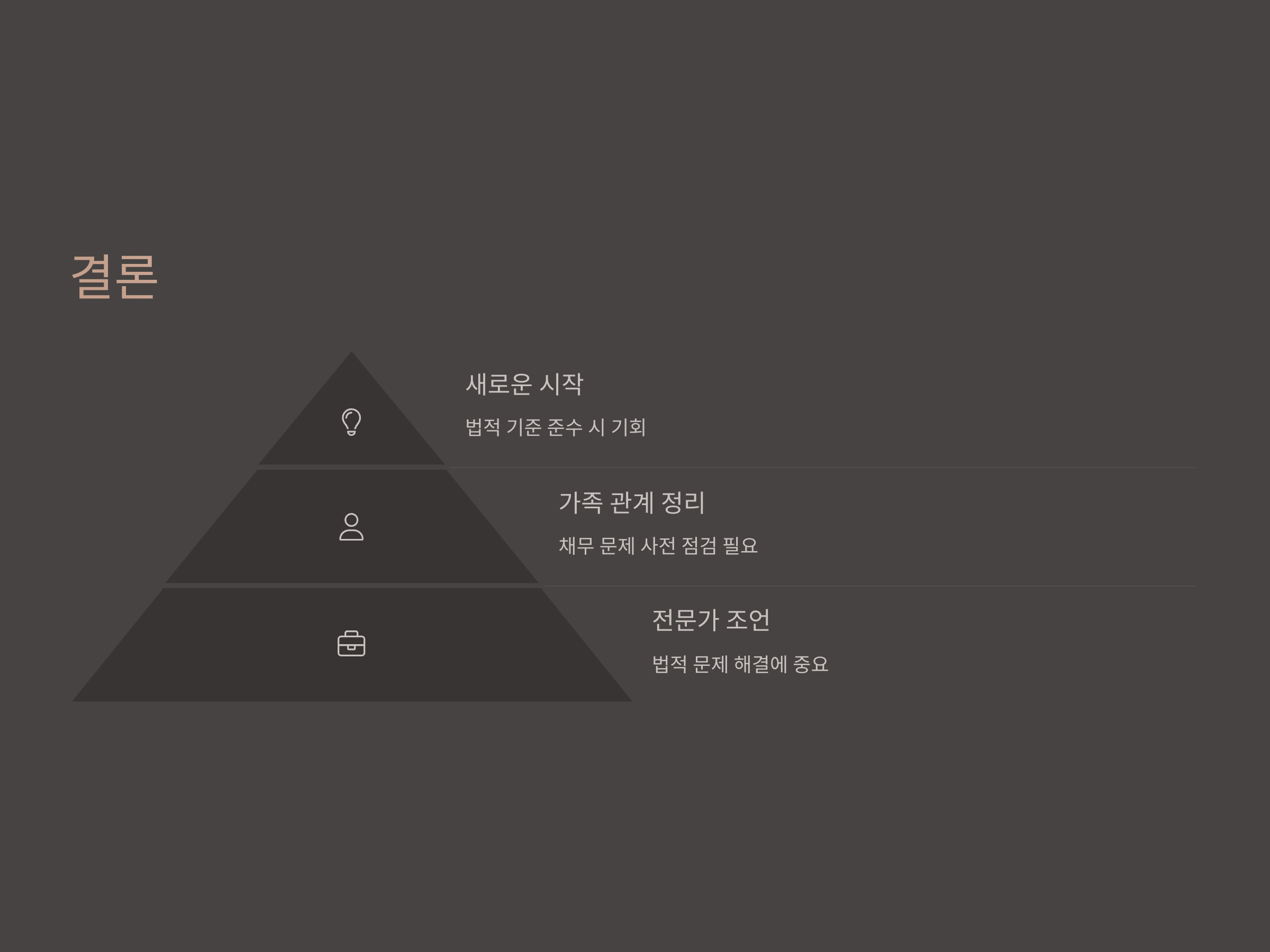 결론적으로, 파산면책과 가족 간 채무 관계는 밀접하게 연관되어 있습니다. 파산을 신청하는 과정에서 가족 간의 채무 관계가 중요한 역할을 할 수 있기 때문에, 채무자는 면책 절차를 시작하기 전에 가족 간의 채무 문제를 미리 점검하고 해결하는 것이 필요합니다. 법적인 기준을 준수하여 파산면책을 신청하면, 새로운 시작을 위한 기회를 얻을 수 있지만, 가족 간의 채무 관계가 복잡하게 얽혀 있으면 그에 따른 법적 문제를 피하기 어려울 수 있습니다.