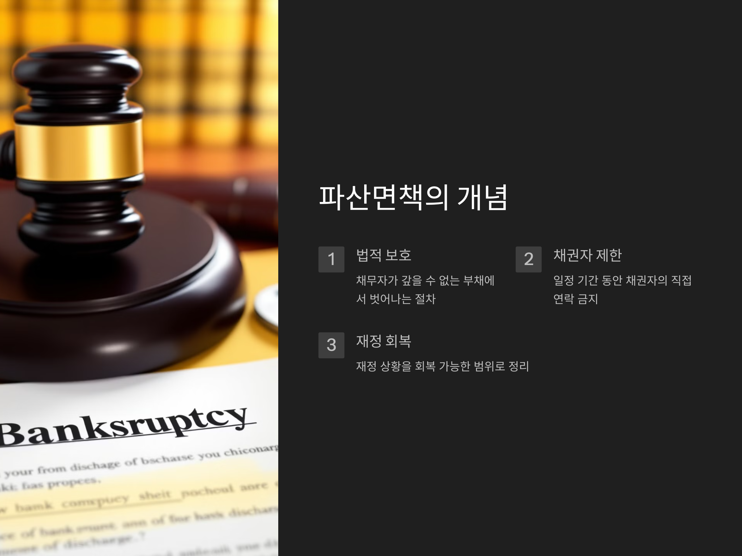 파산면책이란 무엇일까요? 이는 채무자가 법적인 절차를 통해 자신이 갚을 수 없는 부채에서 벗어나 새로운 시작을 할 수 있도록 해주는 법적 보호를 의미합니다. 파산면책을 받으면, 일정 기간 동안 채권자들이 채무자에게 직접 연락할 수 없으며, 채무자의 재정 상황은 재정적으로 회복 가능한 범위로 정리됩니다. 또한, 파산을 신청했다고 해서 모든 직업이 금지되는 것은 아닙니다.