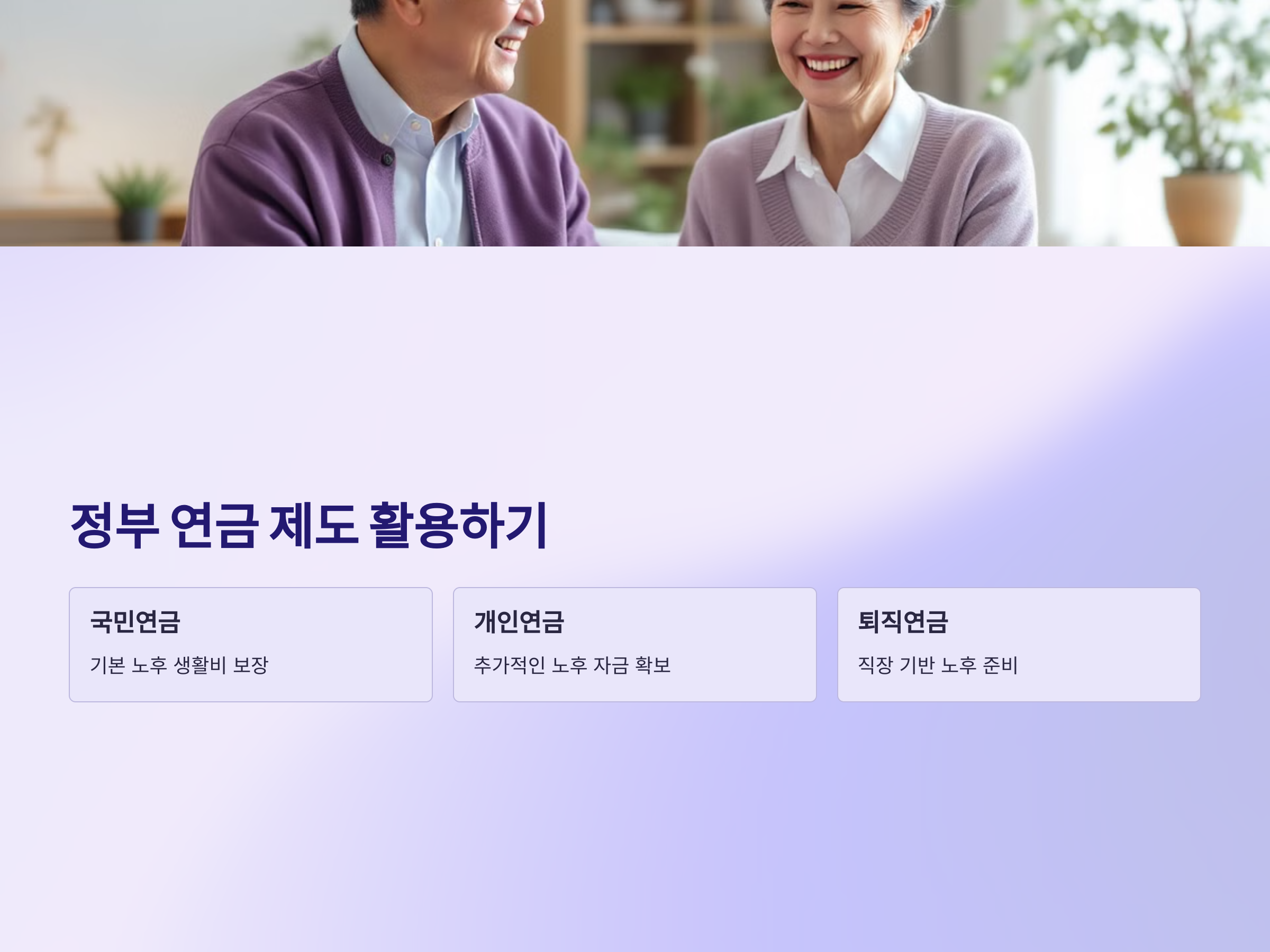 정부 연금 제도는 최소한의 생활비를 보장해주기 때문에, 추가적인 노후 준비와 병행하는 것이 가장 효과적입니다. 이 외에도 개인연금이나 퇴직연금 등을 활용하는 방법이 있습니다. 하지만 개인연금은 스스로 저축과 투자를 통해 준비해야 하므로, 이를 어떻게 활용할 것인지에 대한 전략이 필요합니다. 정부 연금 외에도 다양한 재정적 지원 프로그램이 있으므로 이를 잘 활용하는 것이 중요합니다.